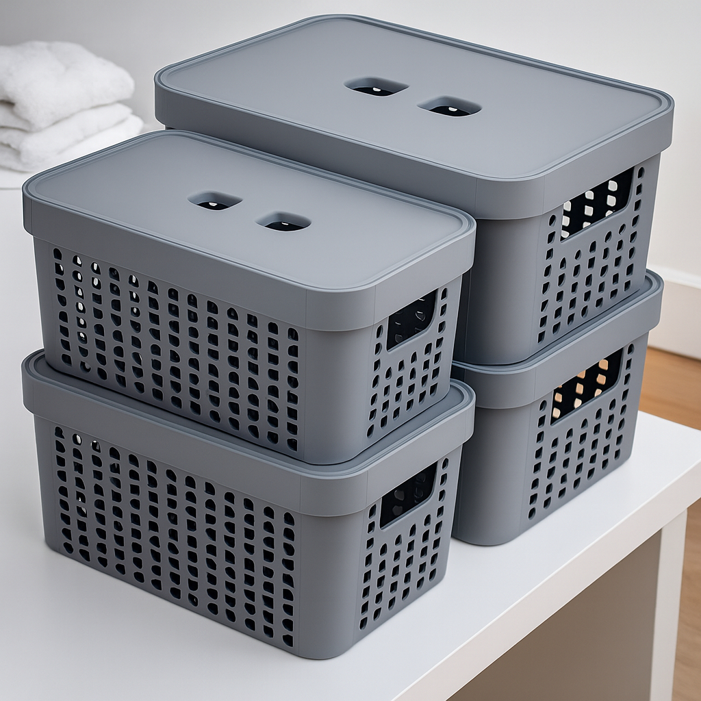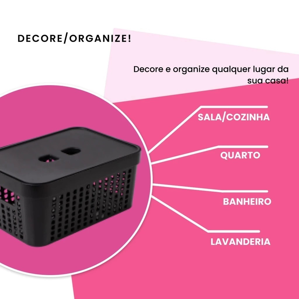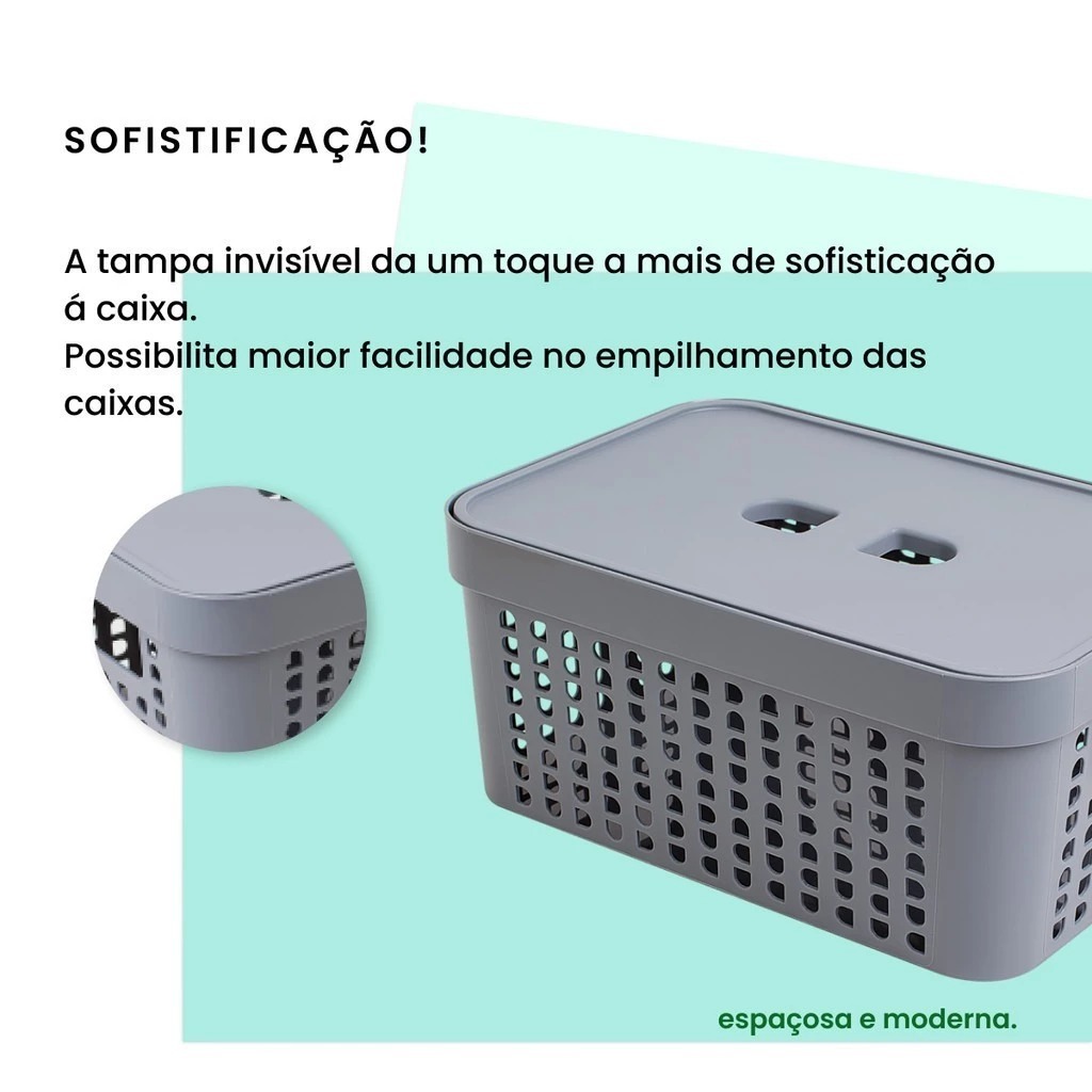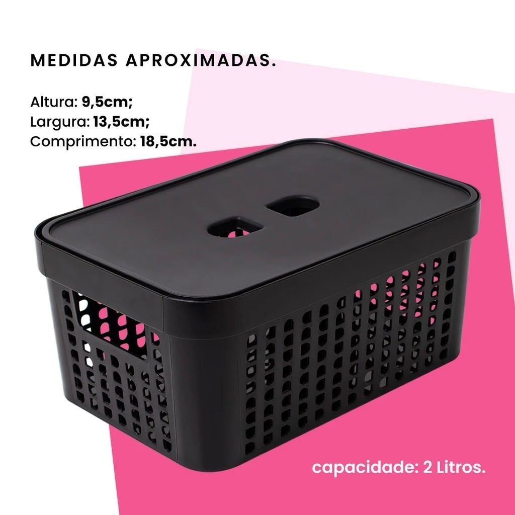 Kit 4 Caixas Organizadoras Com Tampa 2 Litros Cesto Grande em Plástico Resistente Organização