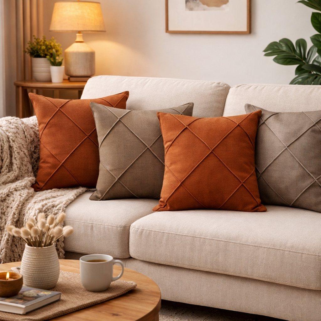 Kit 4 Capas de Almofada Suede Drapeada 45x45cm Decorativas
