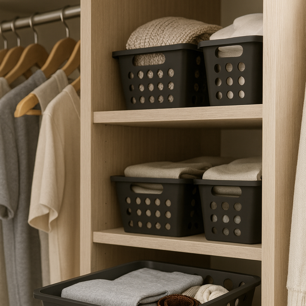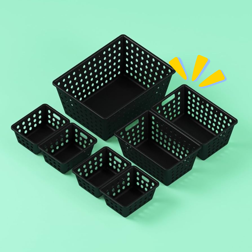 Kit 4 Cestos Organizador Coza One Grande 4,7l Retangular Preto 28x19cm Dispensa Closet Lavanderia