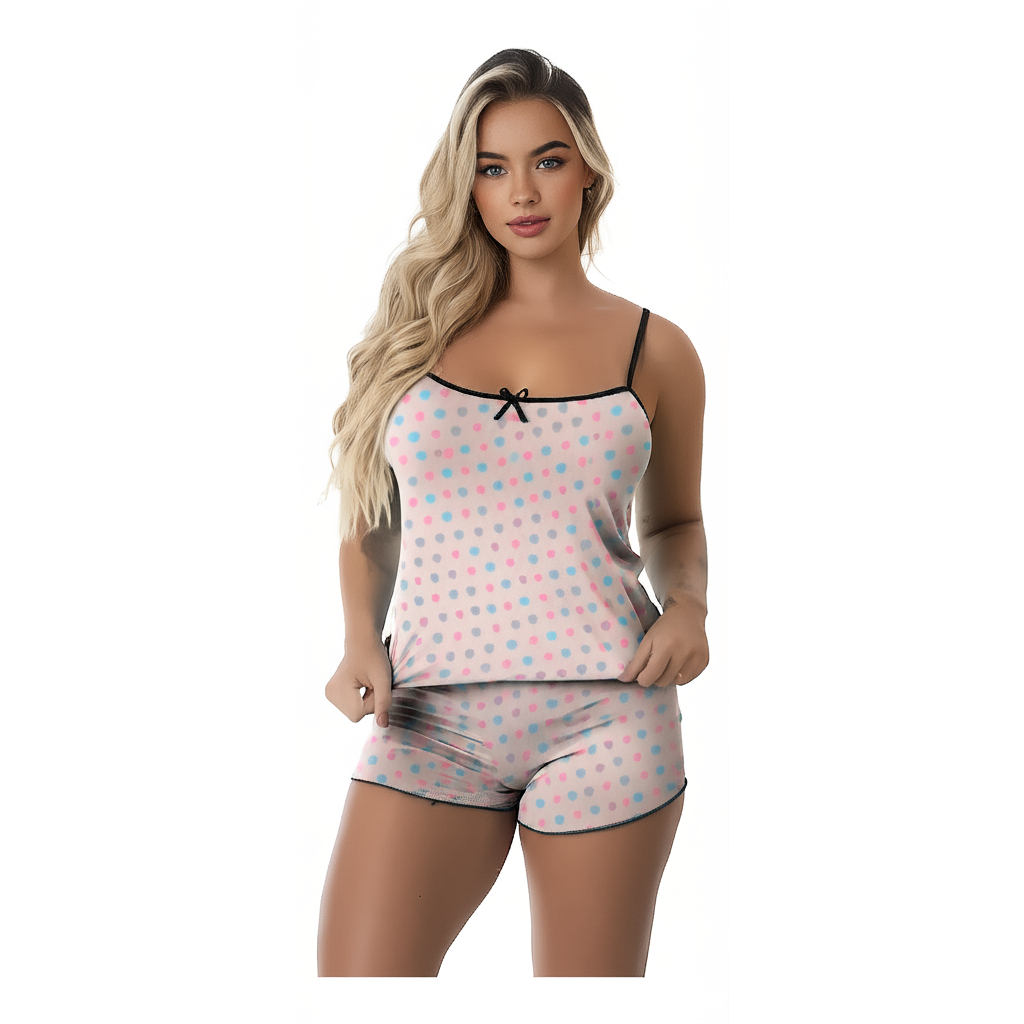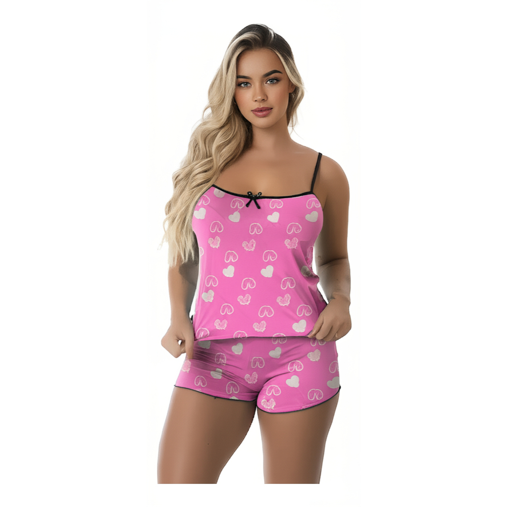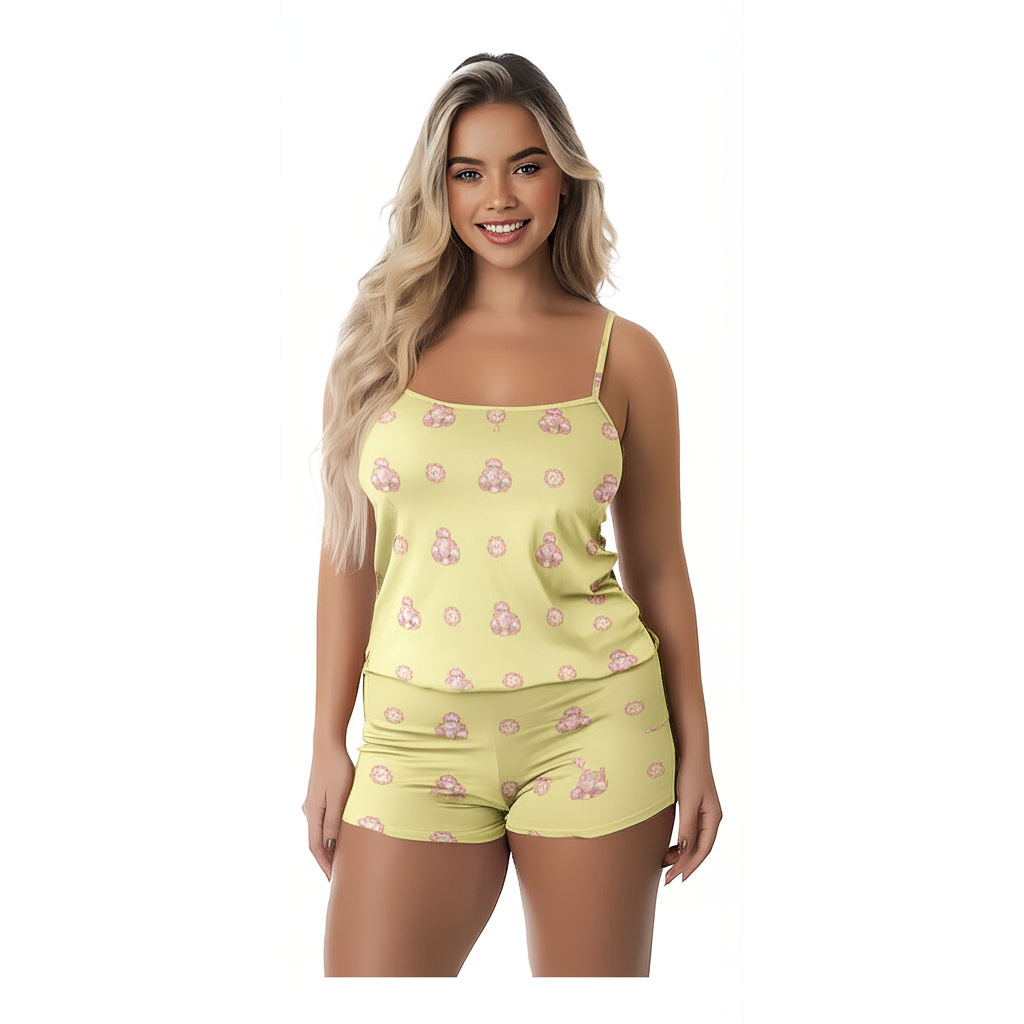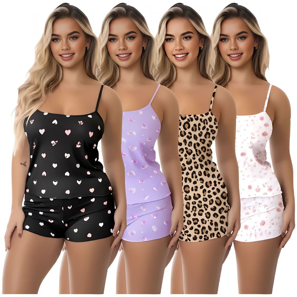 Kit 4 Conjuntos Femininos Baby Doll Pijama Short Doll Estampado Sem Bojo Original