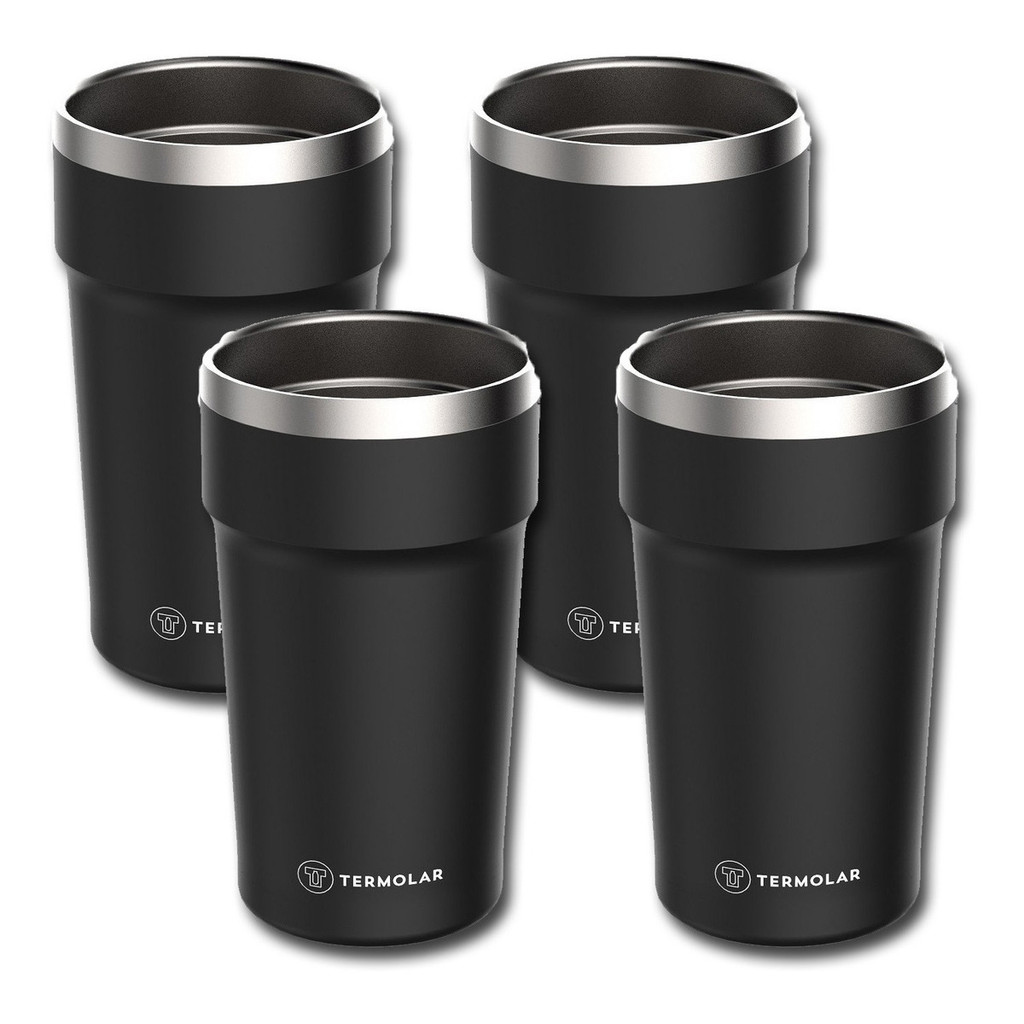 Kit 4 Copo Termico de Inox Cor Preto 500Ml Termolar Para Refrigente Cerveja Bebiba Gelada na Praia