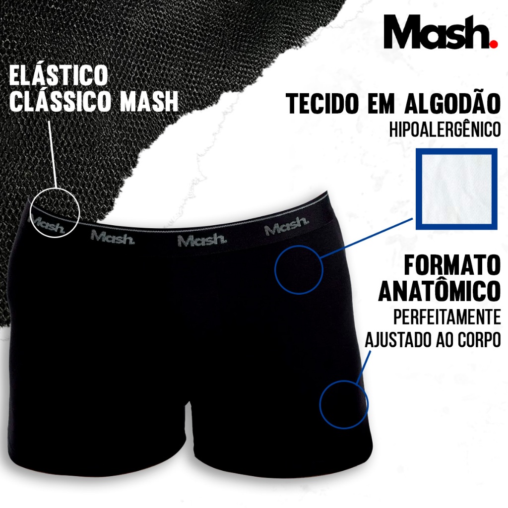 Kit 4 Cuecas Boxer Mash Algodão Box Confortável Cueca Masculina Cós Elástico Original