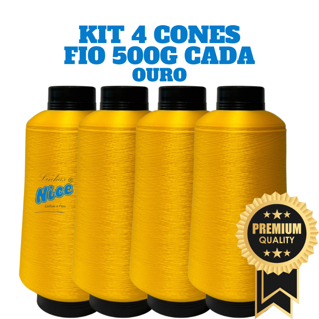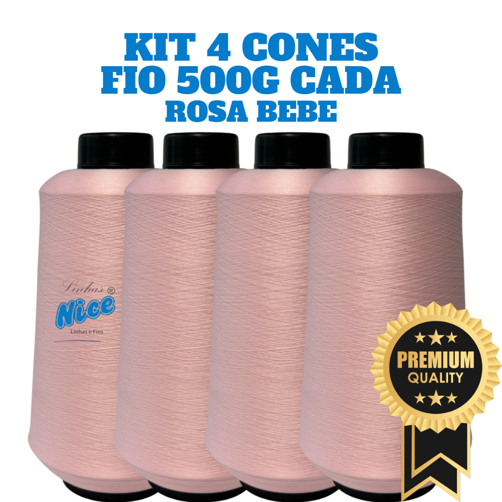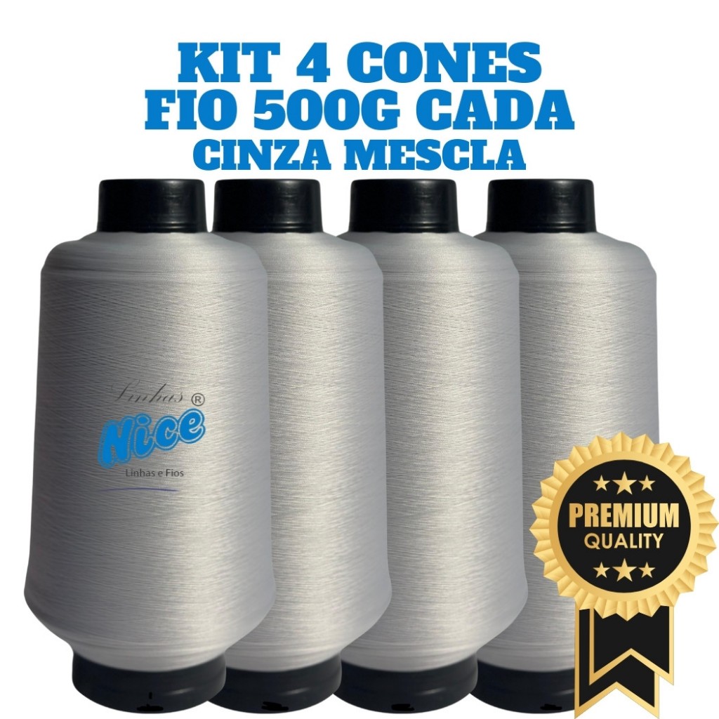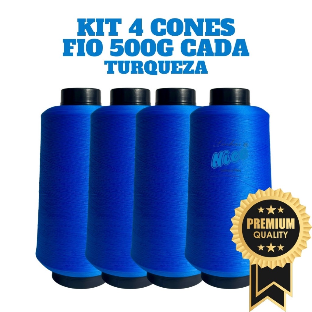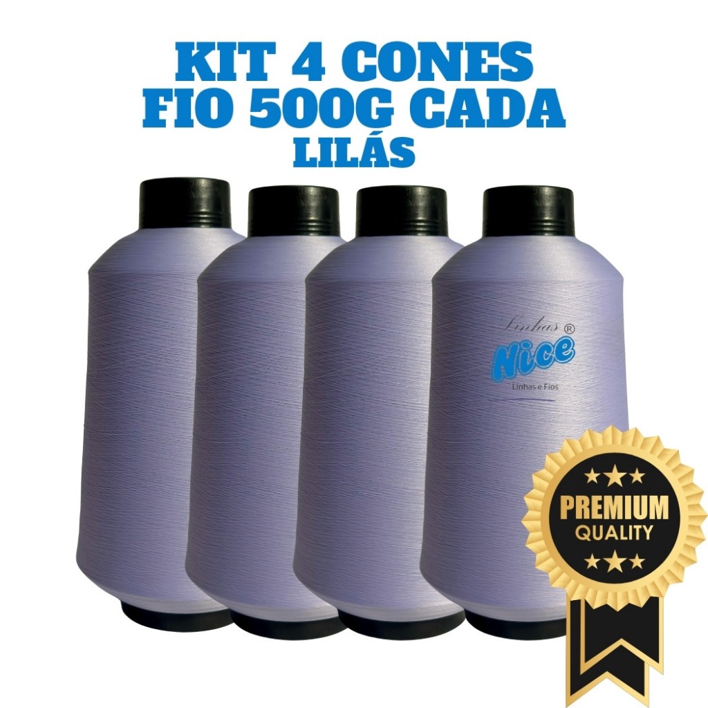 Kit 4 Fios Maquina Overloque - Fio 500G Cada - Preto, Branco Ou Colorido - Costura Overloque