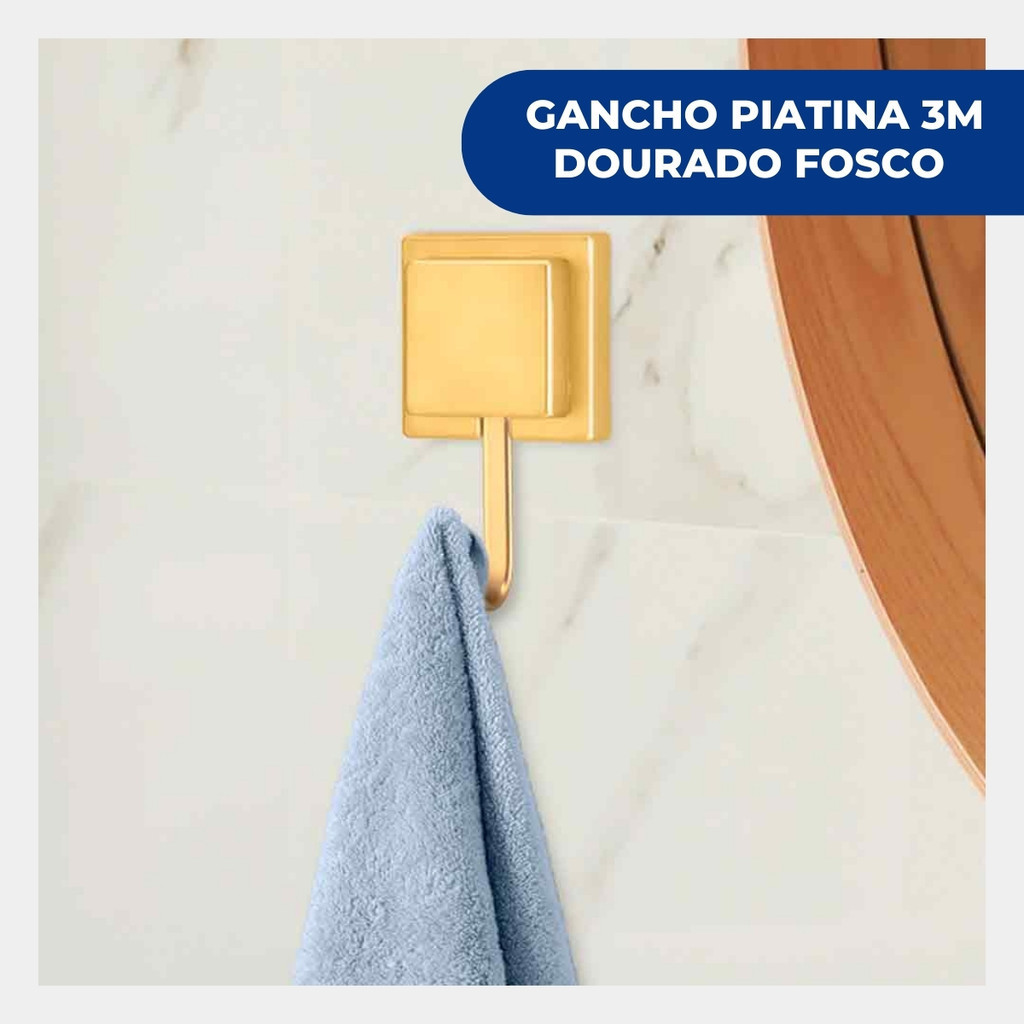 Kit 4 Gancho Cabide Suporte Porta Toalha de Parede Banheiro Pano dePrato Cozinha Dourado Fosco Arthi