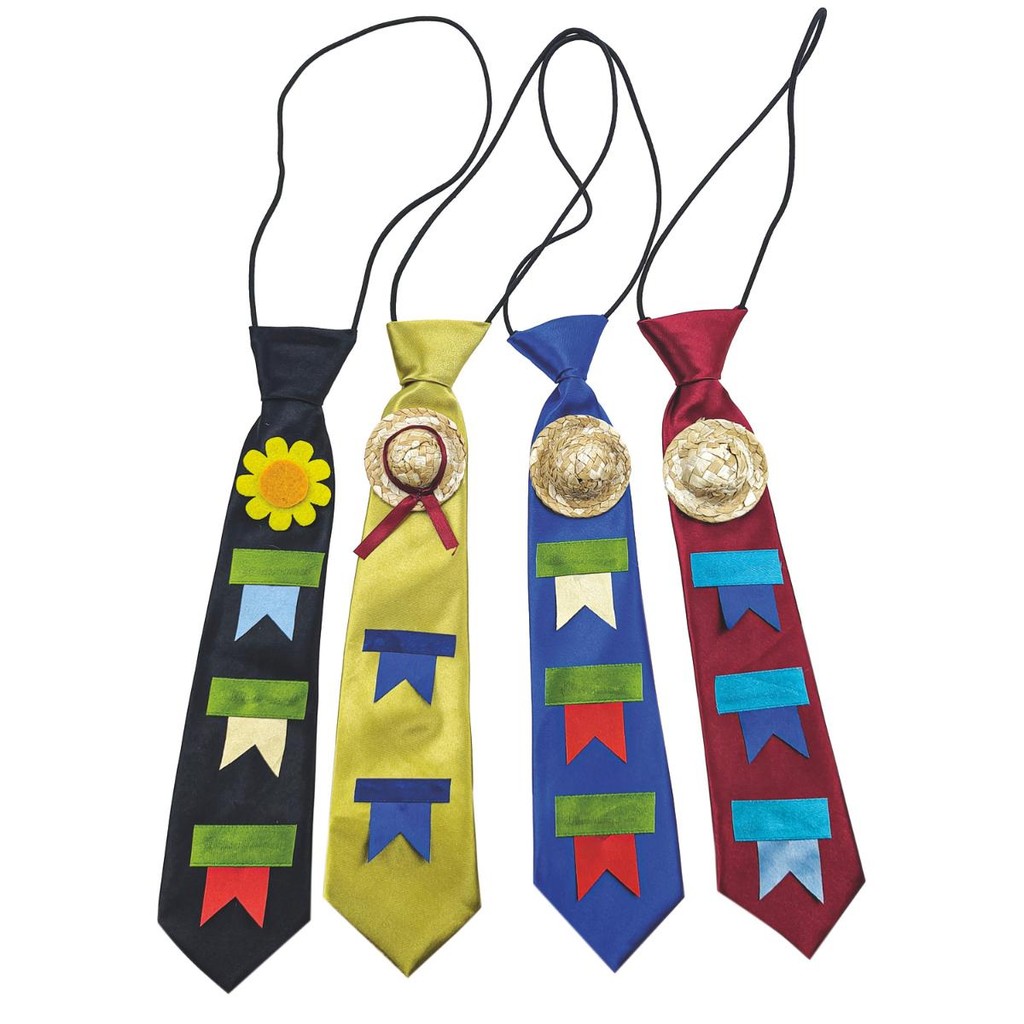 Kit 4 Gravata Junina com Bandeirinhas Sortidas 25cm