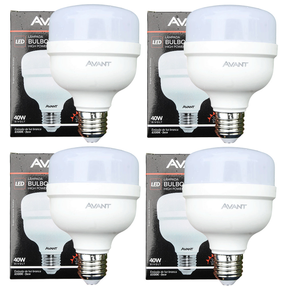 Kit 4 Lâmpada LED Bulbo High Power Avant 40W Bivolt 6500K Branco Frio 3200lm E27 Alta Potência