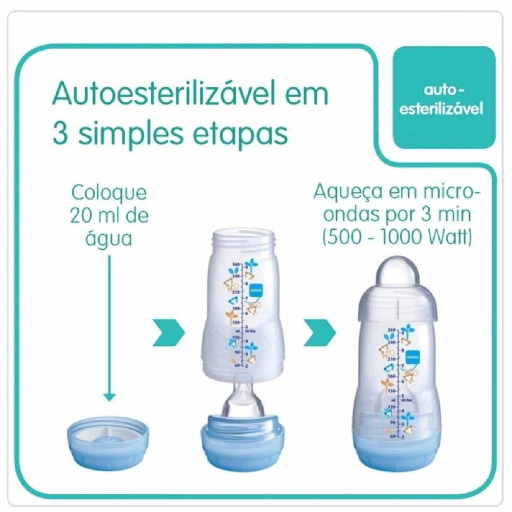 Kit 4 Mamadeiras + 2 Bicos Easy Start Gift Set Neutro - MAM