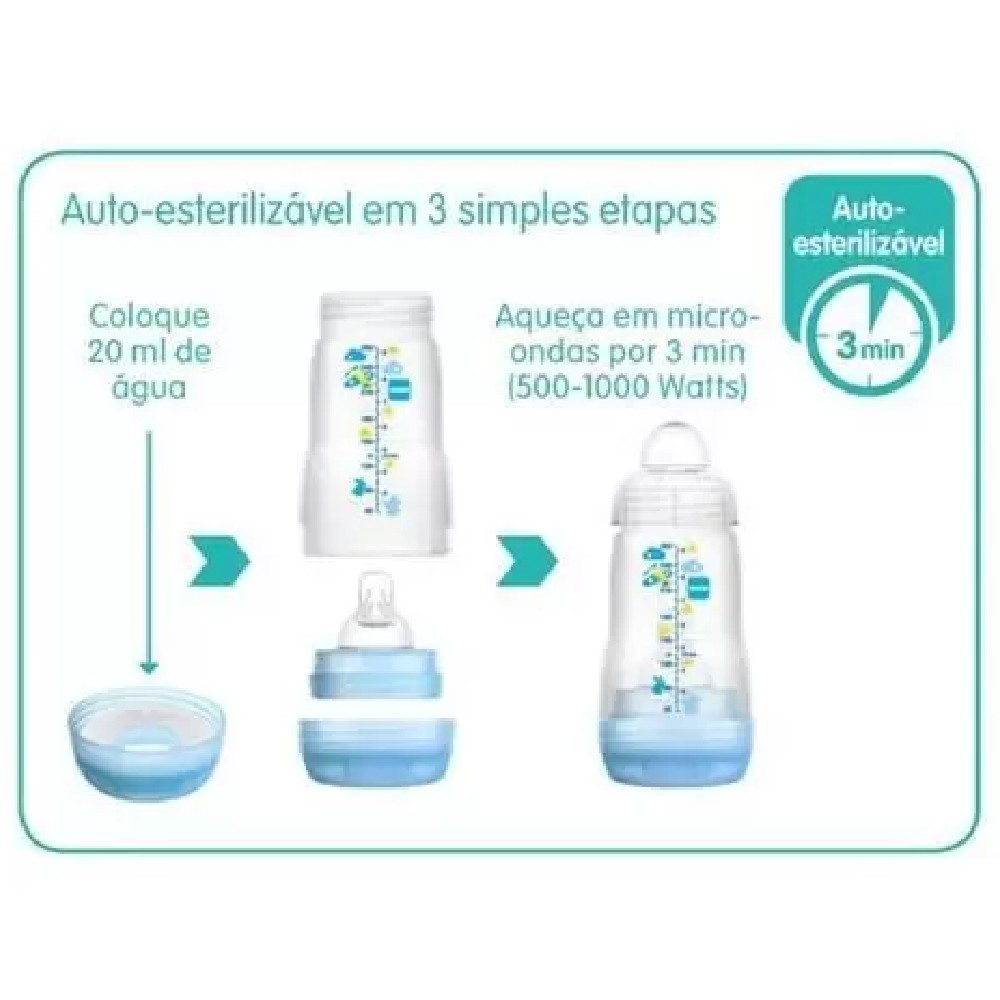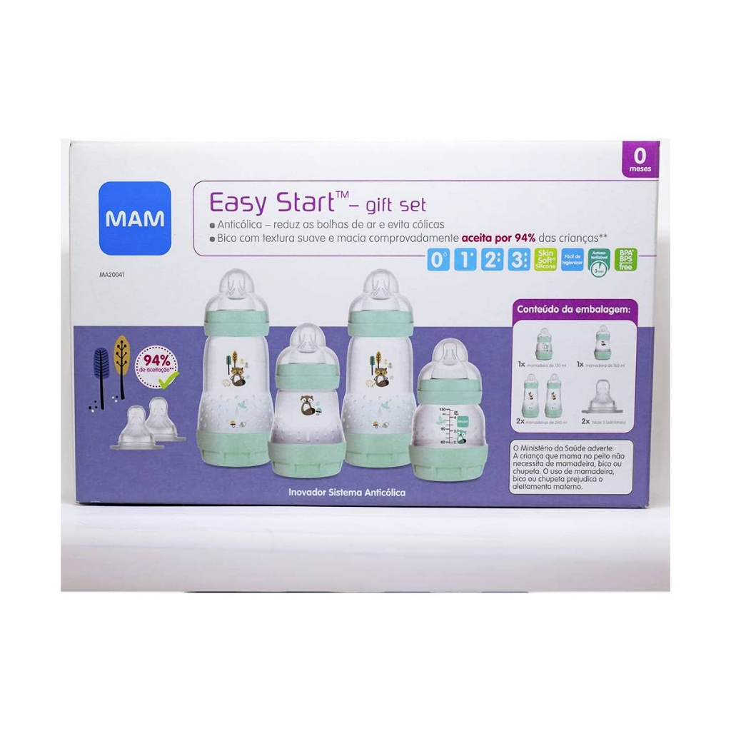 Kit 4 Mamadeiras + 2 Bicos Extras Easy Start Azul-esverdeado claro - MAM