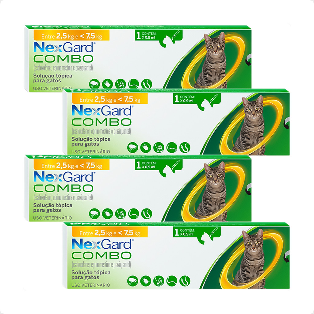 Kit 4 NexGard Gatos 2,5Kg a 7,5Kg - 1 Aplicador 0,9ml