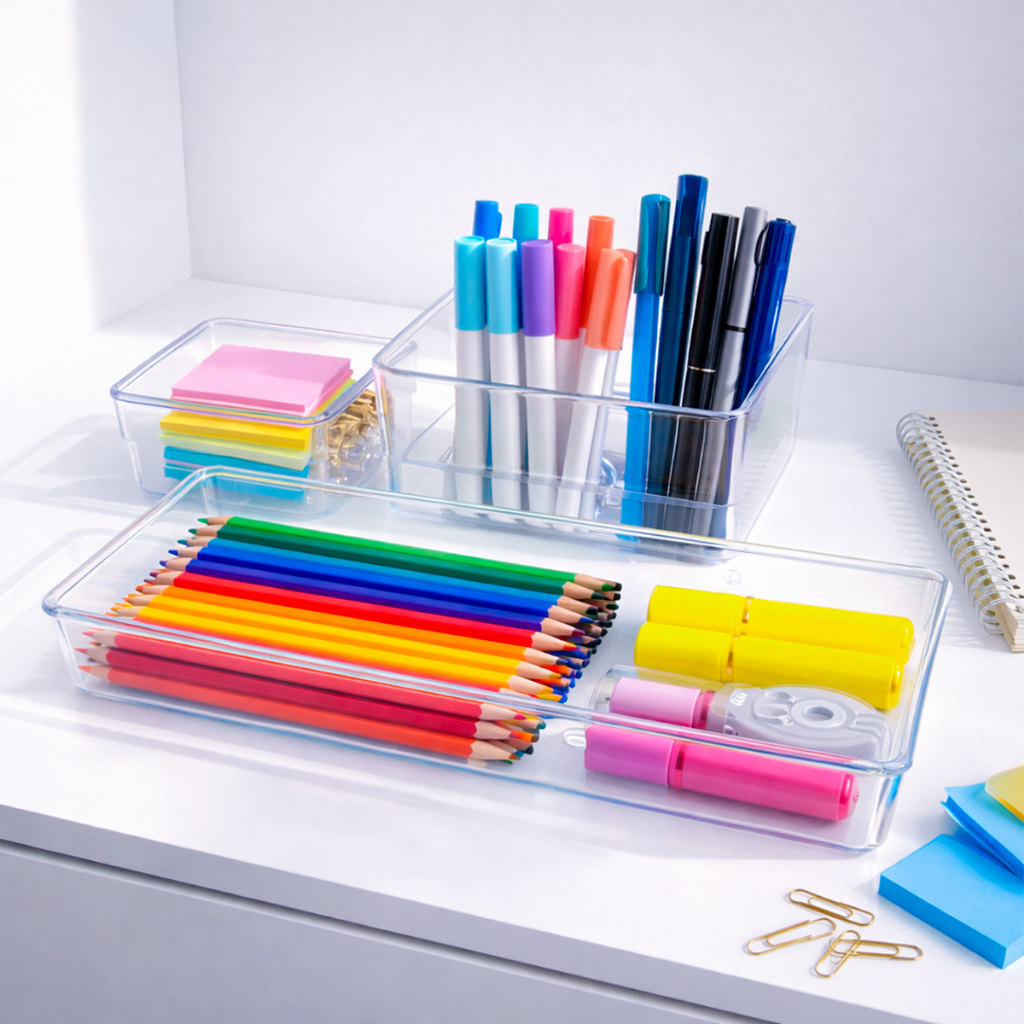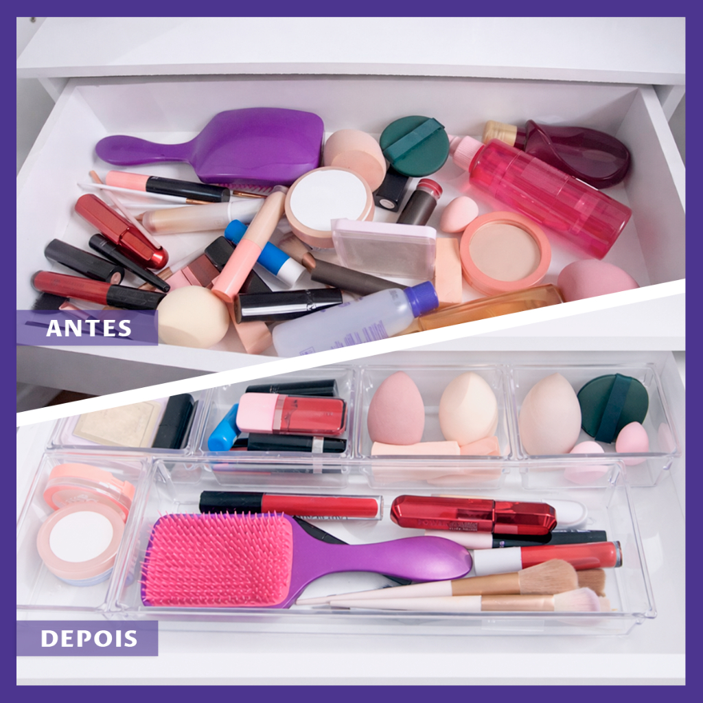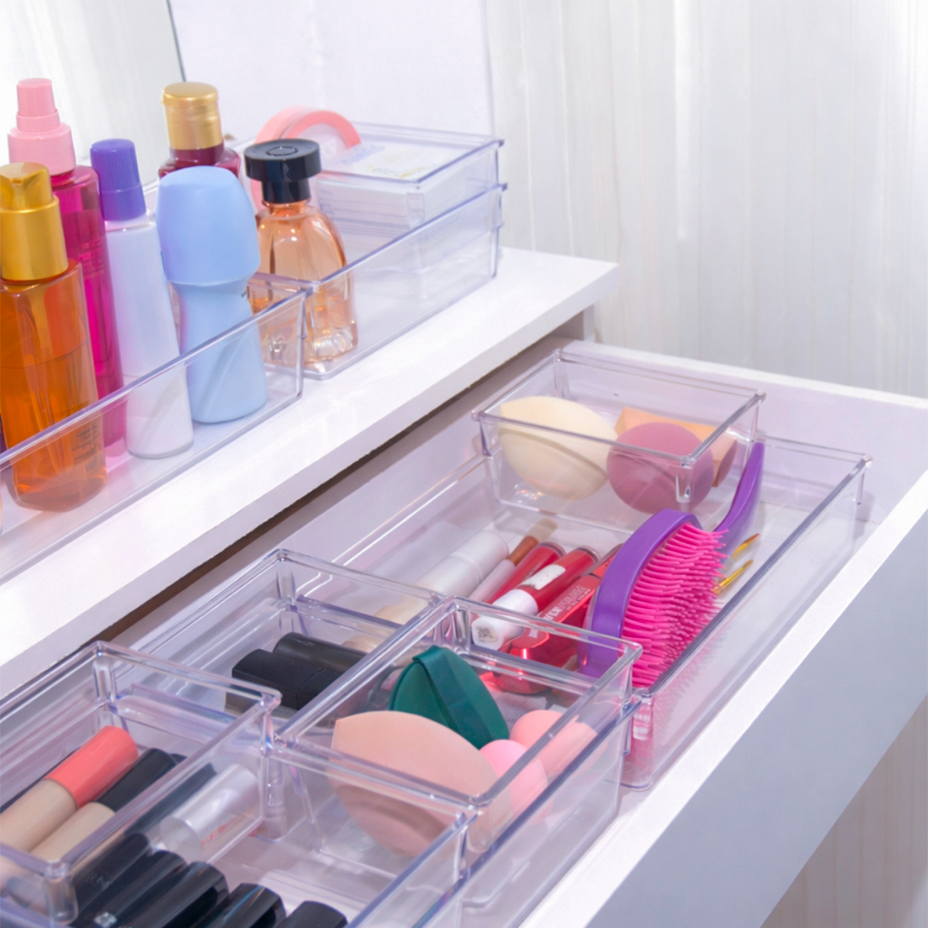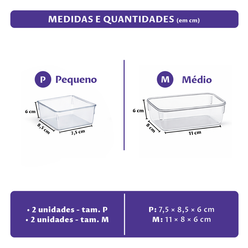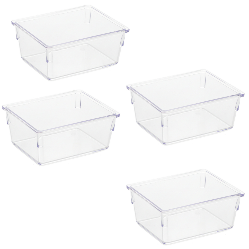 Kit 4 Organizadores Retangular Médio Multiuso Modular Gavetas e Mesas Pote Acrilico Cristal