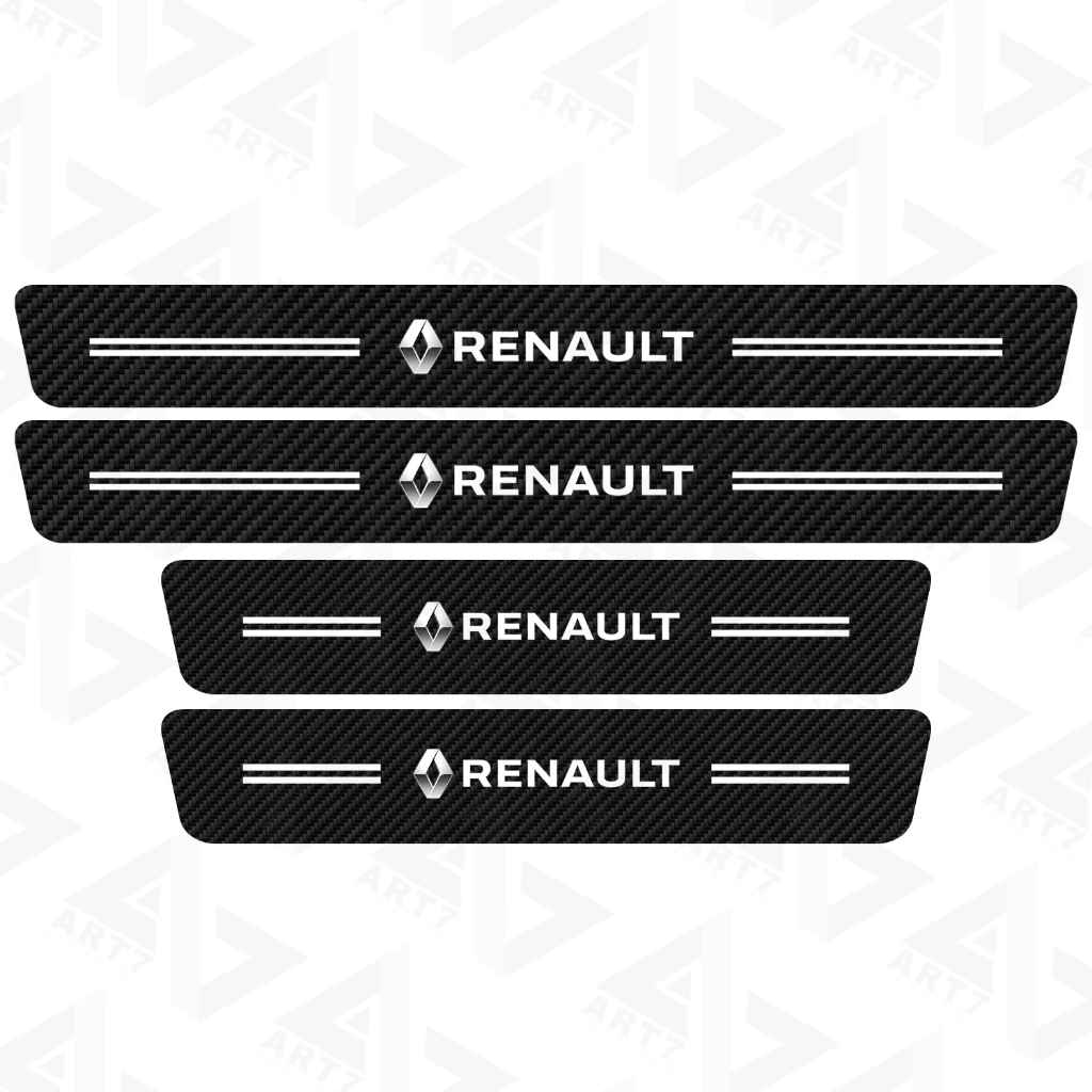 Kit 4 Peças Adesivo Soleira Porta Carro Compatível Renault Proteção Fibra de Carbono Anti Arranhões