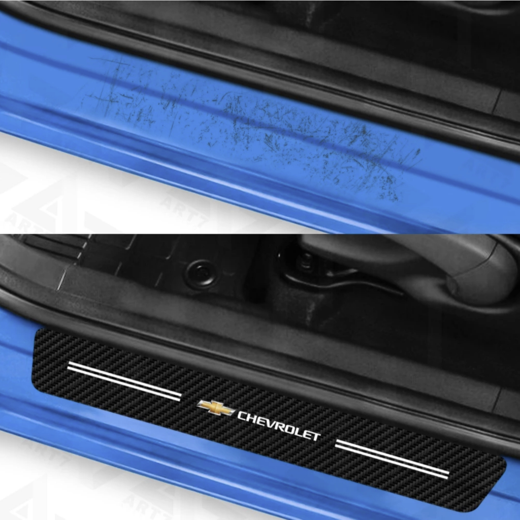 Kit 4 Peças Adesivo Soleira de Porta Carro Modelo Chevrolet Proteção Fibra de Carbono Anti Arranhões