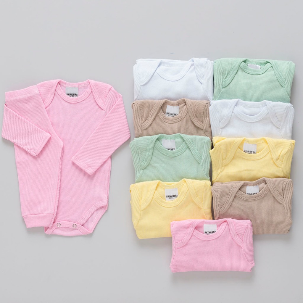 Kit 4 Peças Bebê Pagão Canelado Longo 100% Algodão 2 Body 2 Calças
