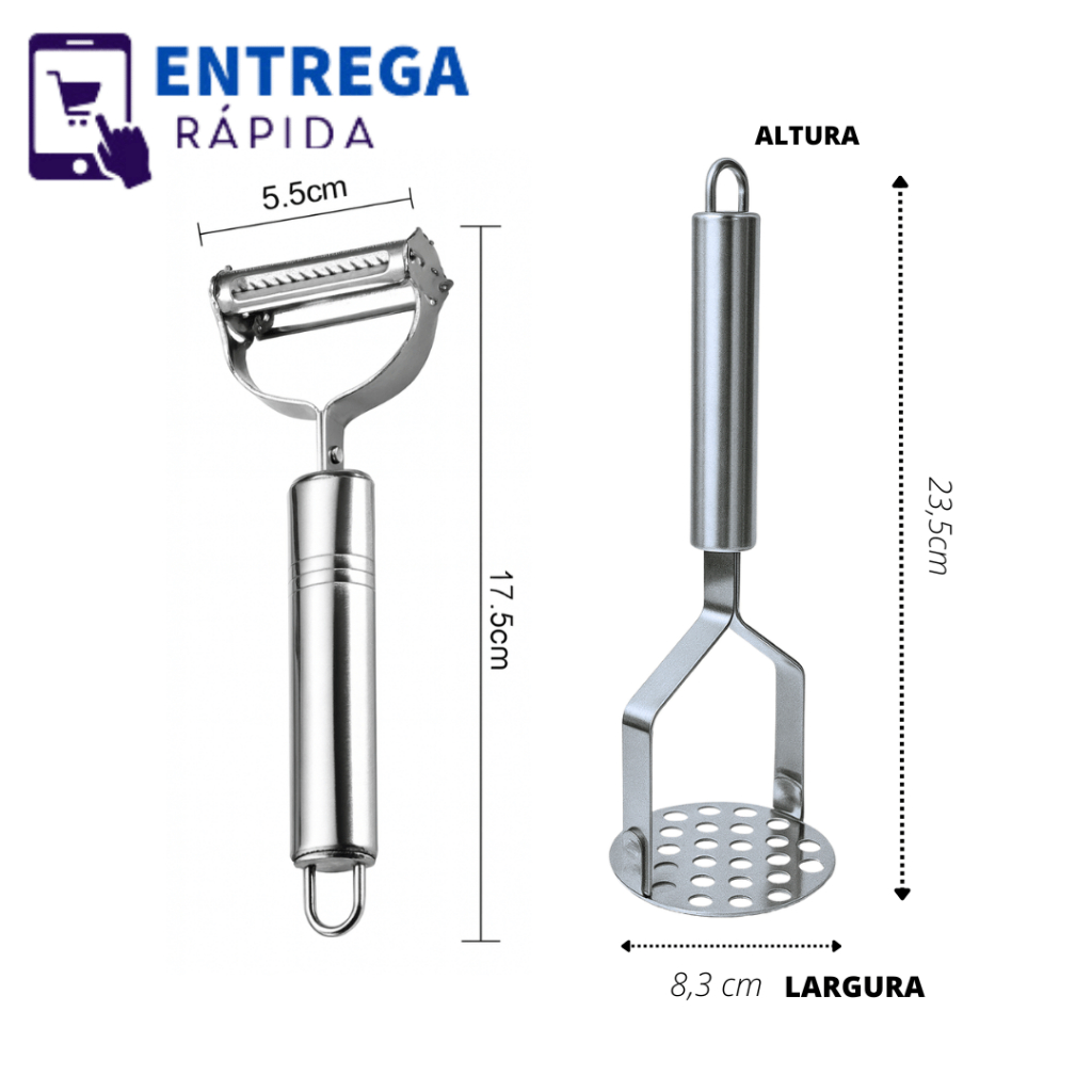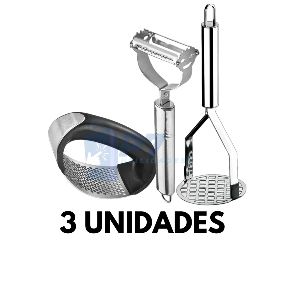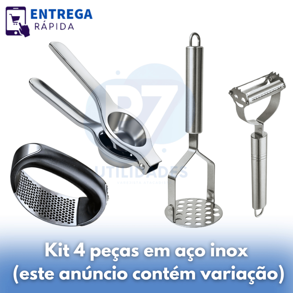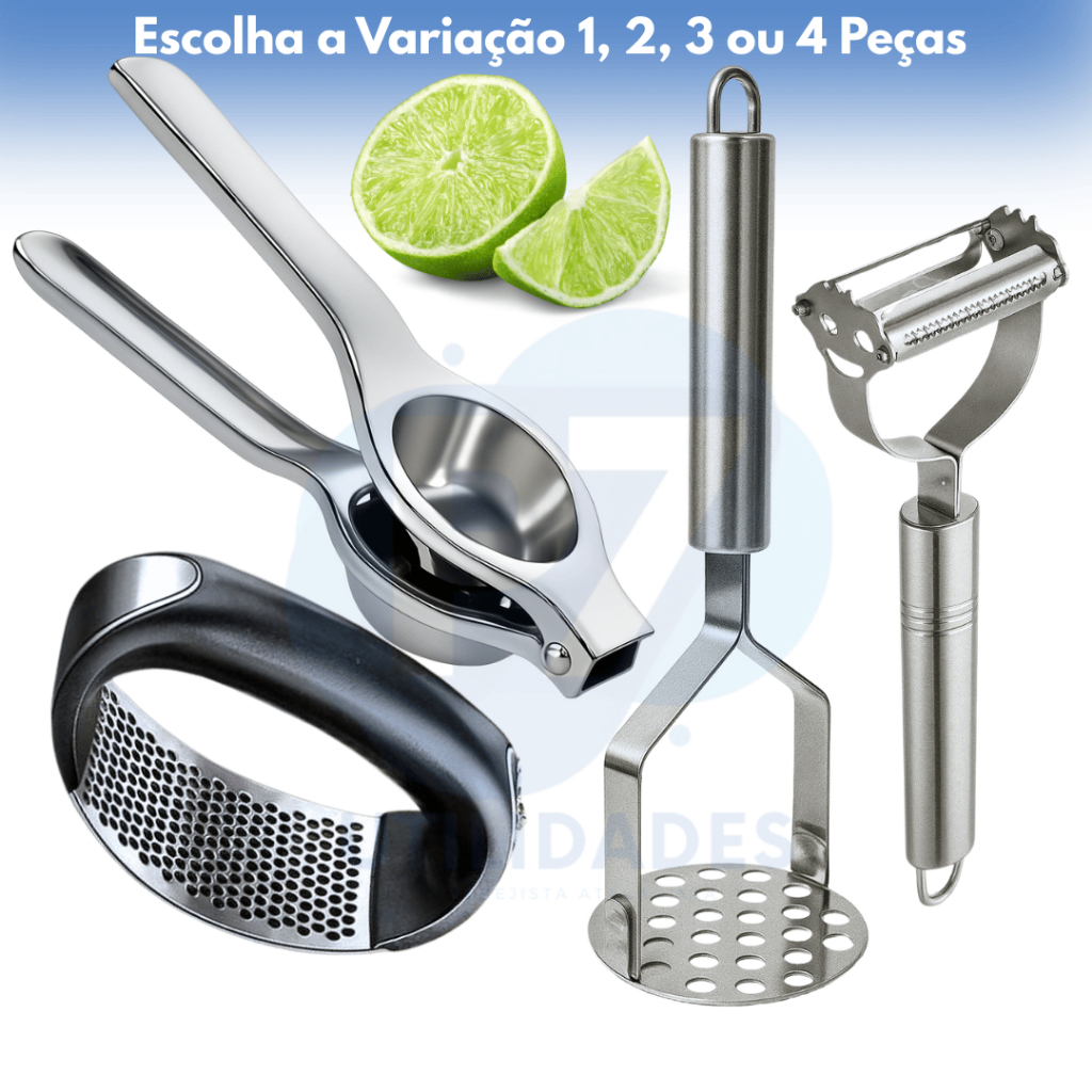 Kit 1, 2, 3 ou 4 Peças Espremedor de Alho e Limão, Descascador de Legumes Amassador de Batata Inox