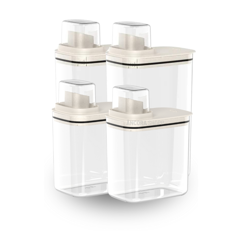 Kit 4 Peças Dispenser Flow 1,5 E 2,3 Litros Sabão Líquido Amaciante Produtos Limpeza Lavanderia