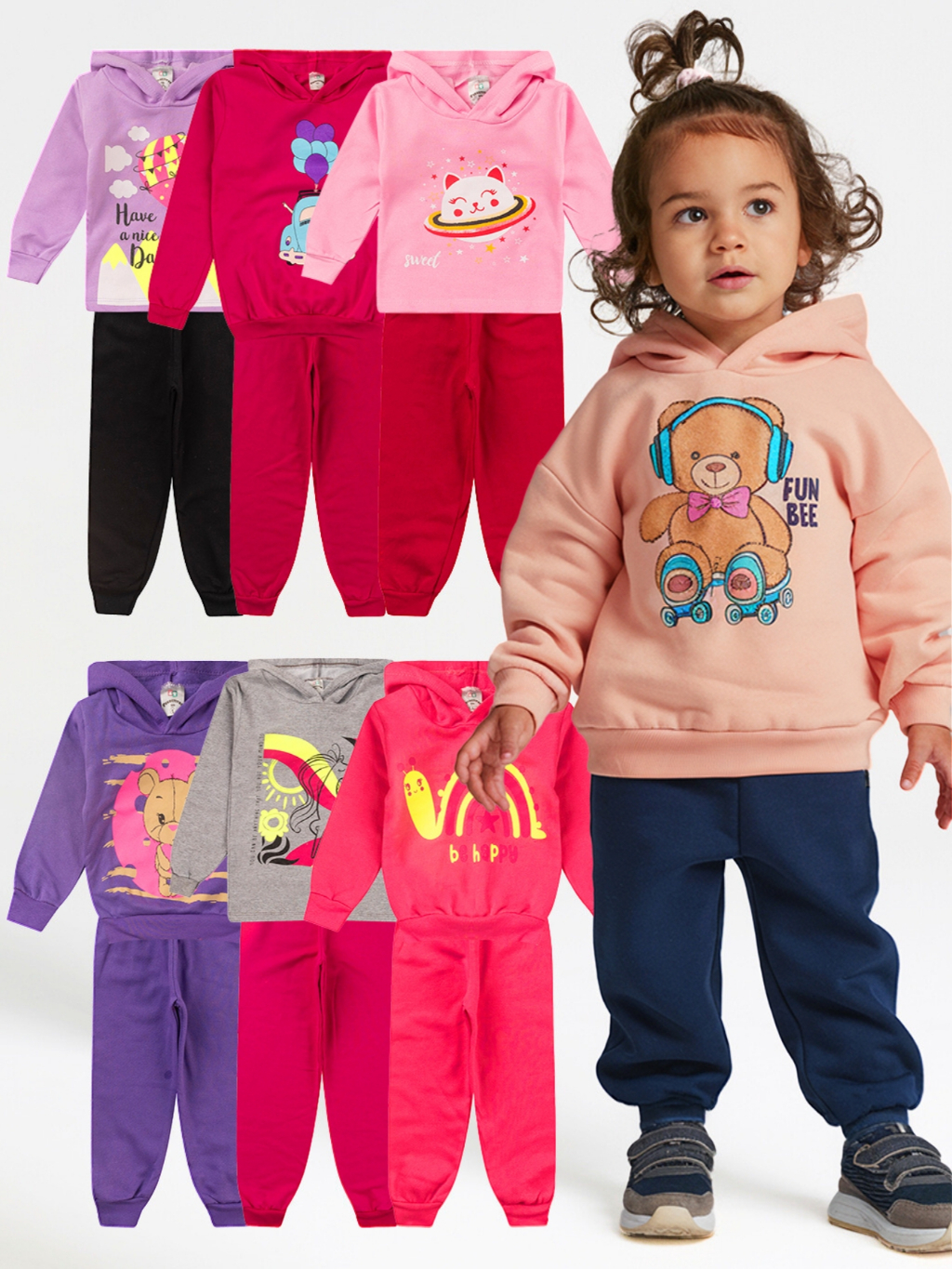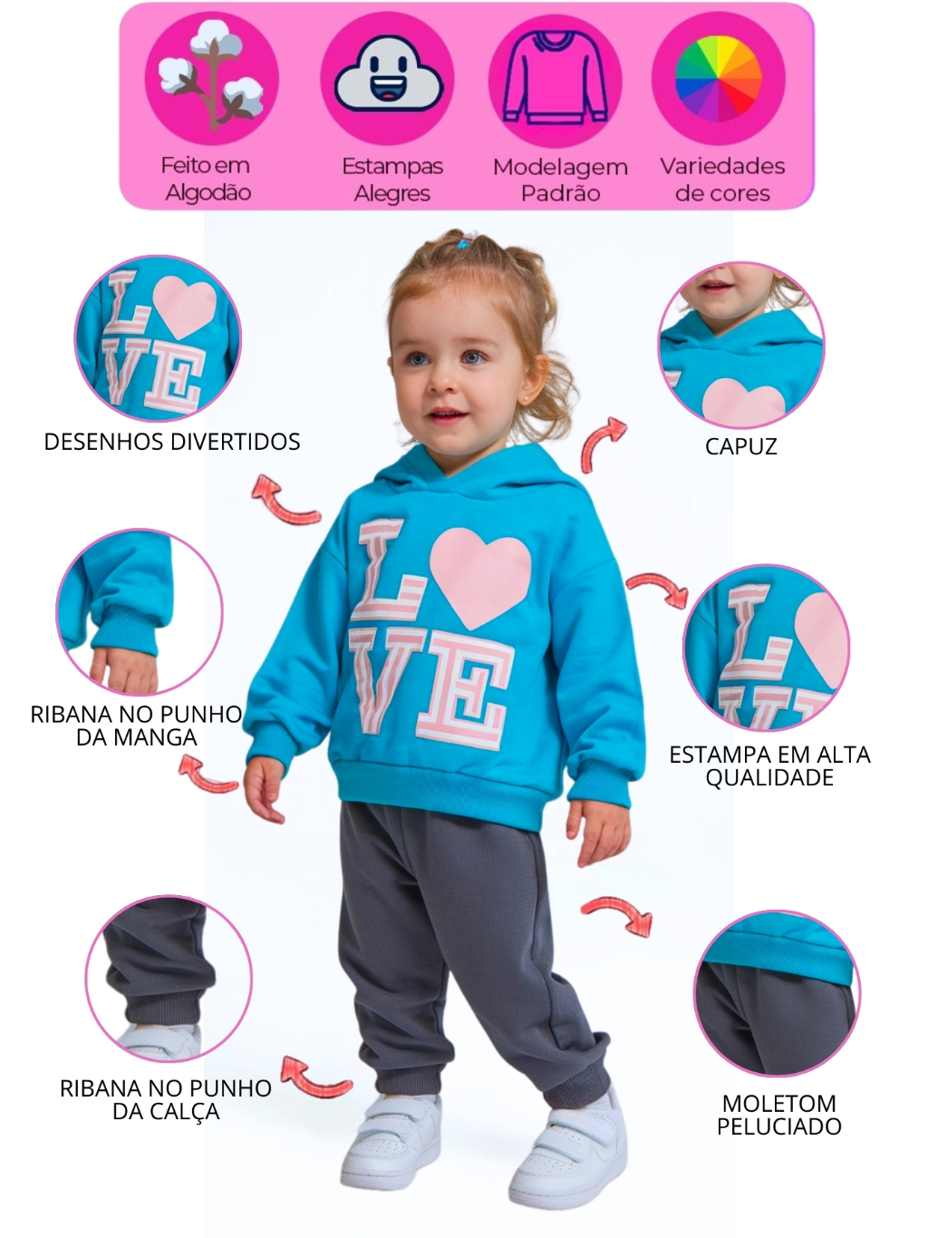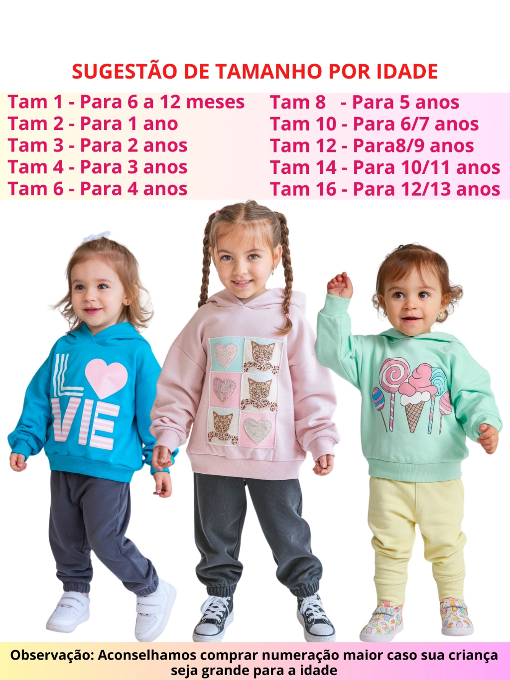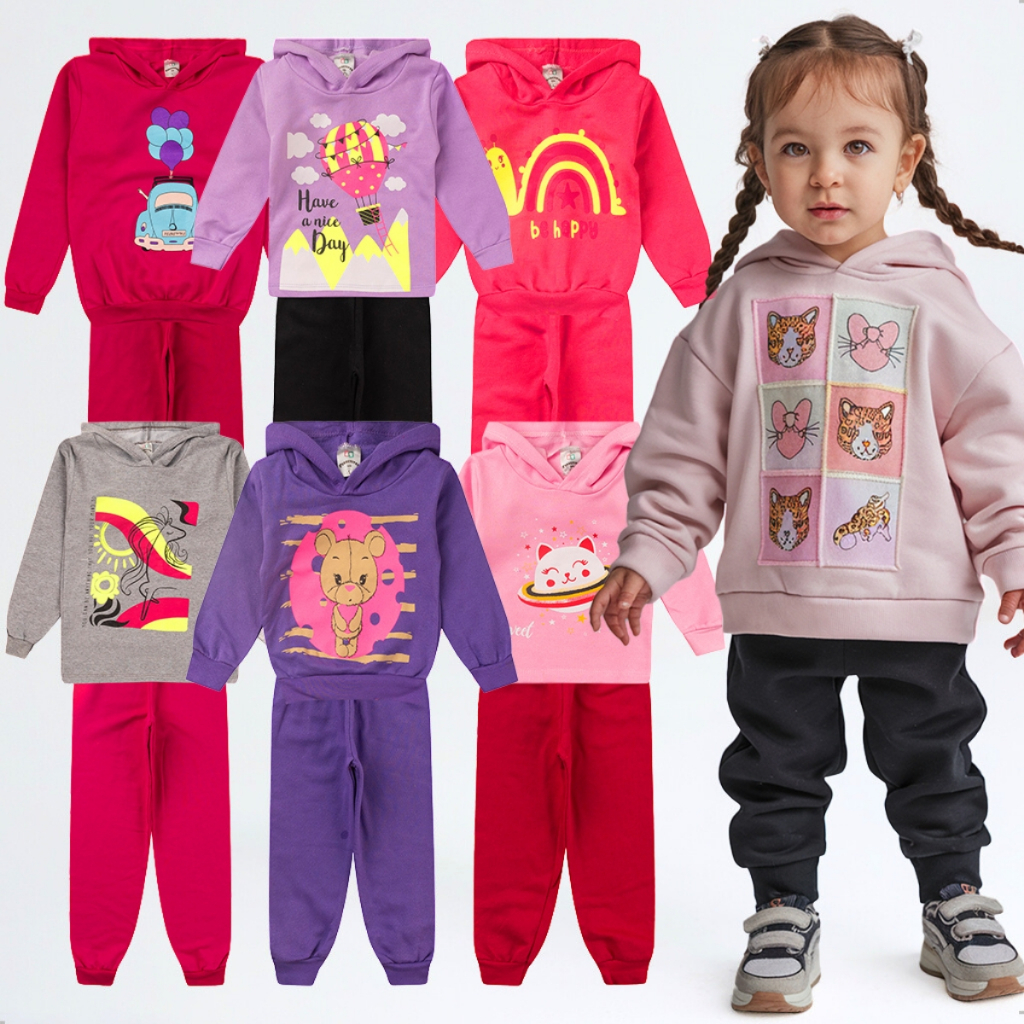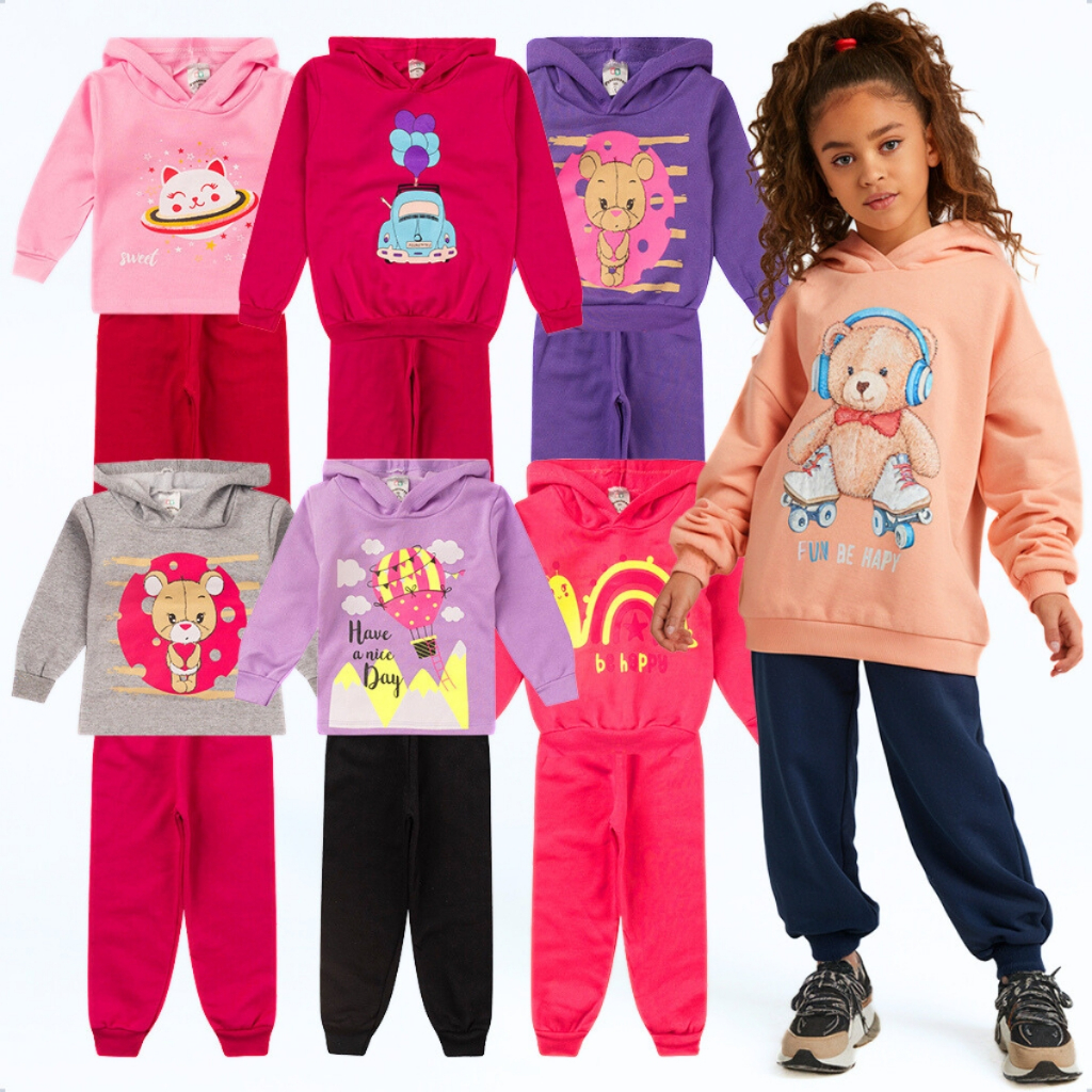 Kit 4 Peças Moletom Com Capuz Conjunto Infantil Menina Inverno Feminino Pronta Entrega