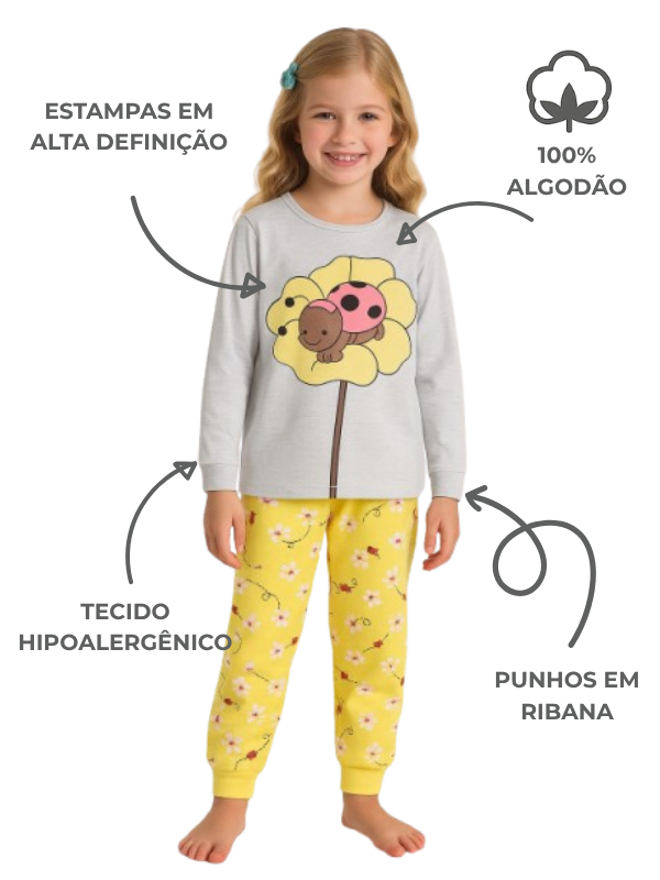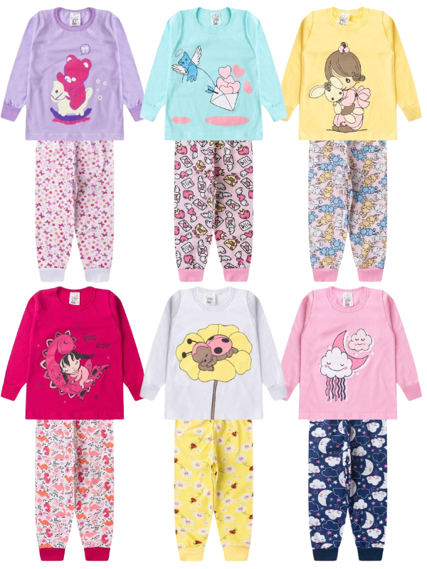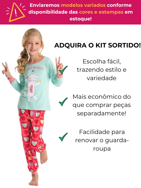 Kit 4 Peças Pijama Sortido Infantil Menina Meia Estação