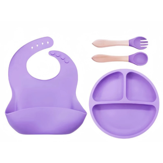Kit 4 Peças de Talheres de Silicone para Introdução Alimentar Infantil Bebês e Crianças