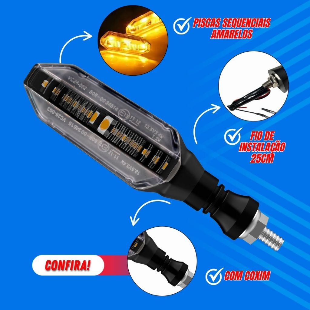 Kit 4 Pisca Seta Sequencial Led Modelo 250 Twister Honda Cb Xre 300 Titan Fan Nxr Bros Cbx 125 150 160 Yamaha Parafuso