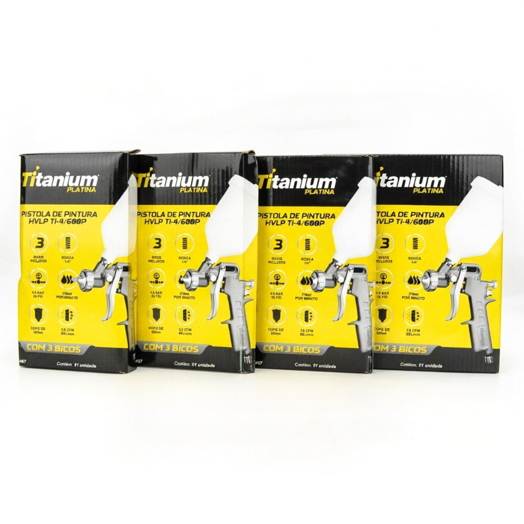 Kit 4 Pistolas Pintura HVLP Gravidade 3 Bicos Titanium