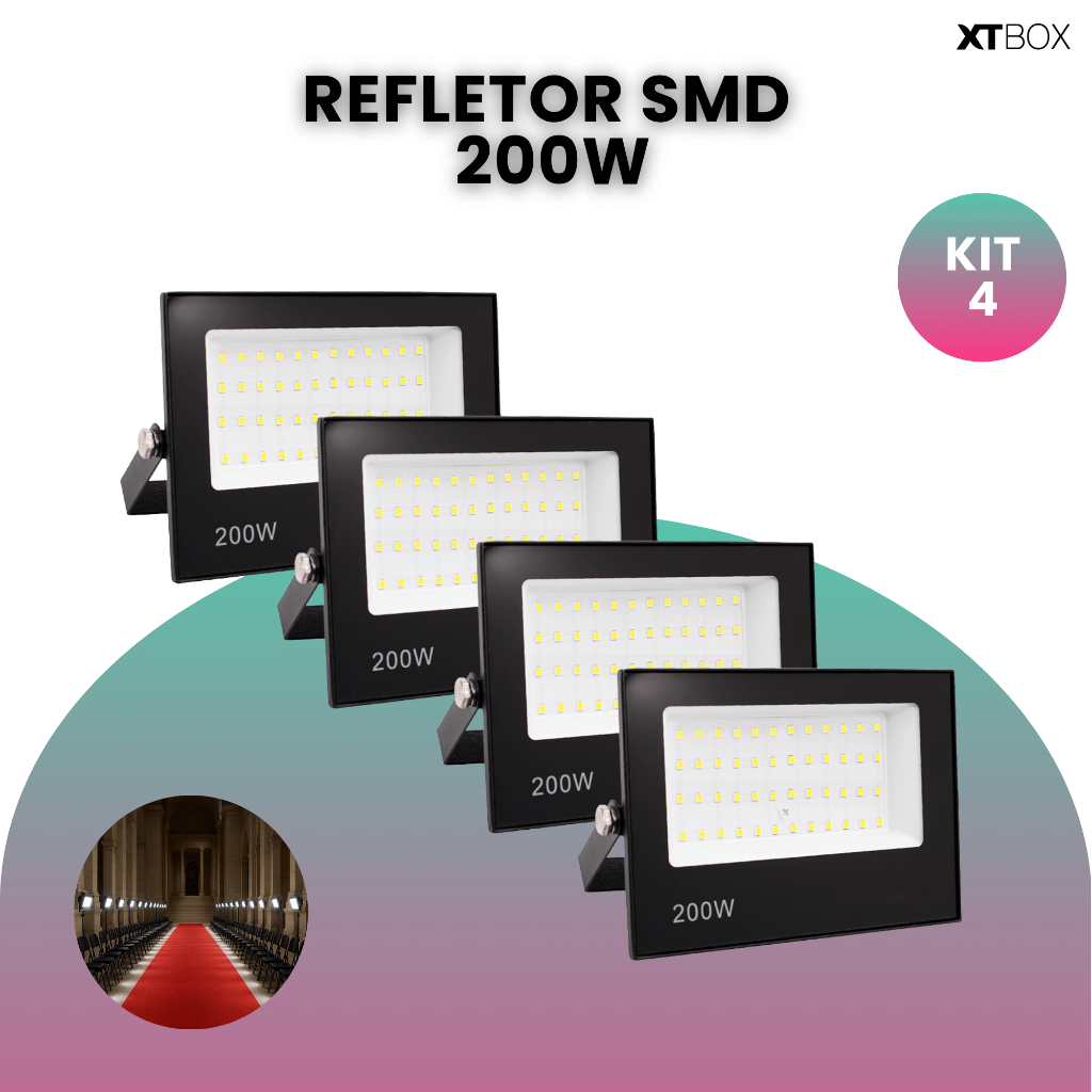 Kit 4 Refletor Led 200w Holofote Prova D'água Bivolt Luz Intensa Branco Frio
