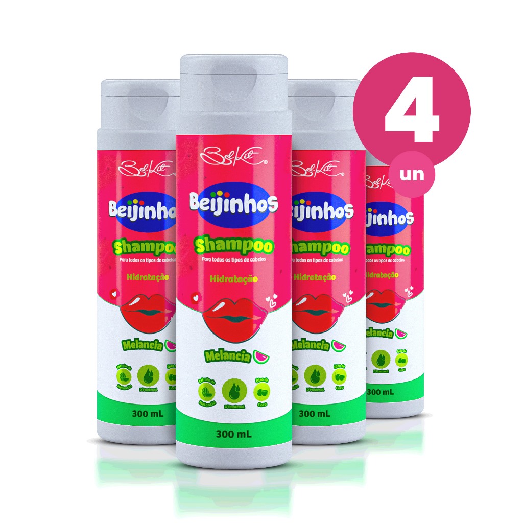 Kit 4 Shampoo Hidratante Beijinhos Melancia 300ml Belkit