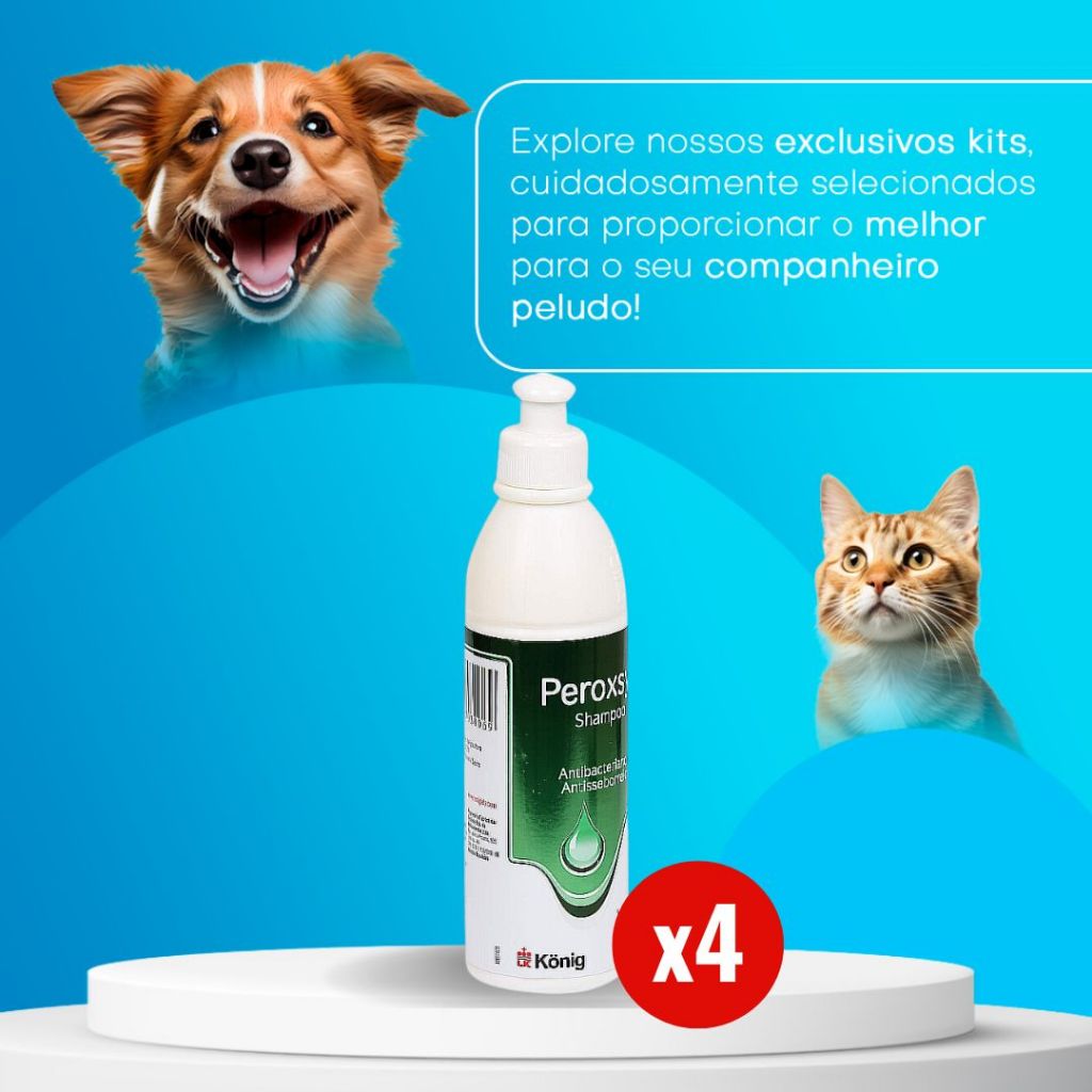 Kit 4 Shampoo Peroxsyn 200ml para Cães e Gatos König