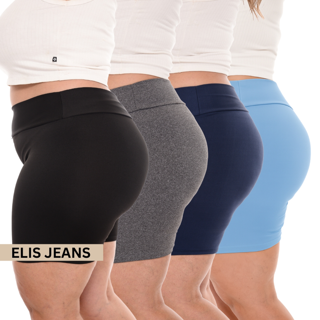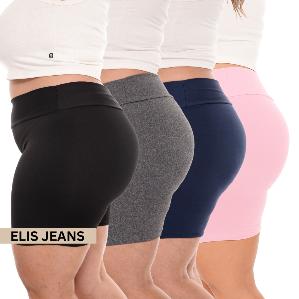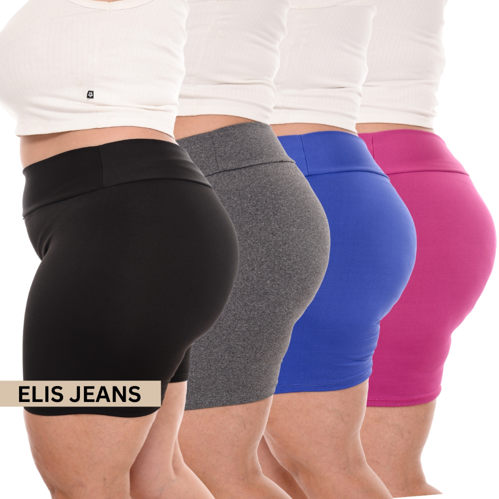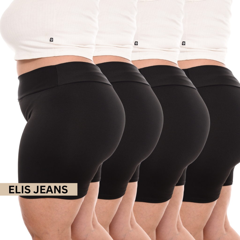 Kit 4 Shorts Feminino Plus SizeFitness Meia Coxa Short Cintura Alta Bermuda Legging Zero Transparência