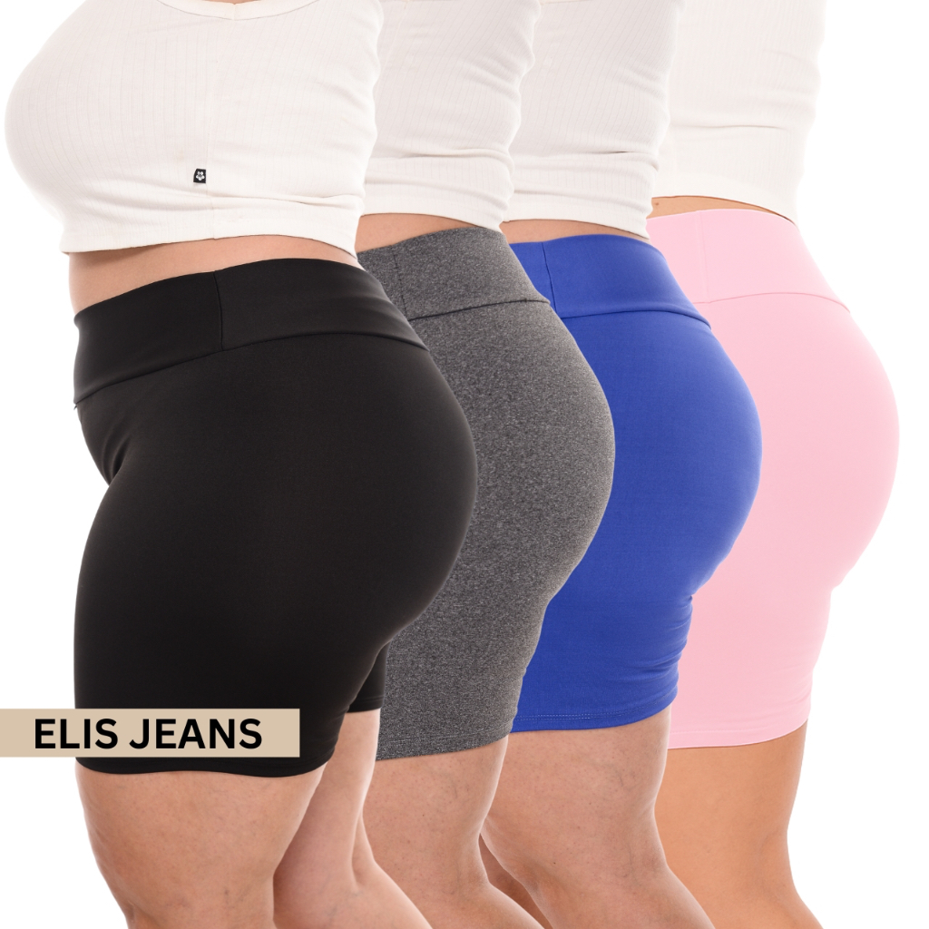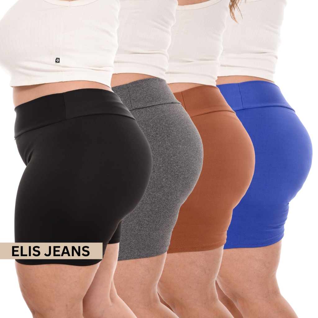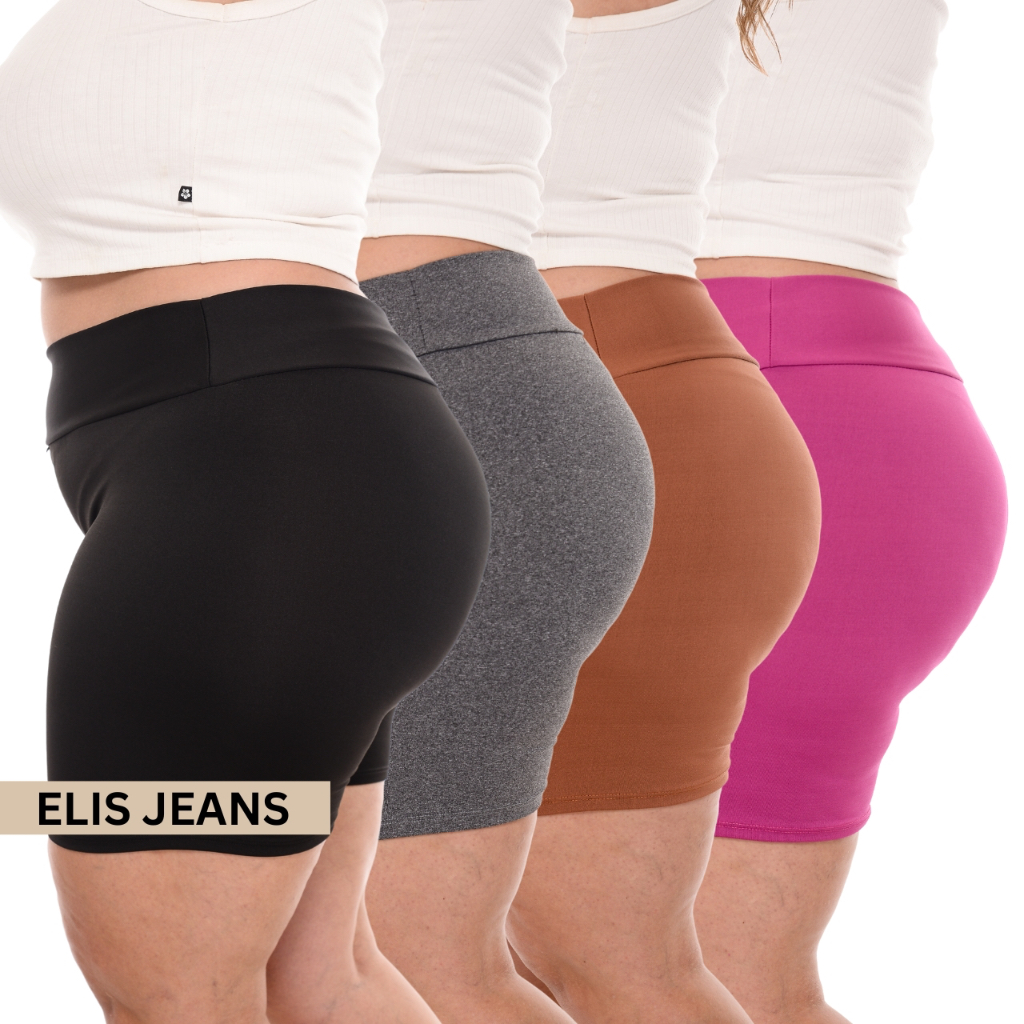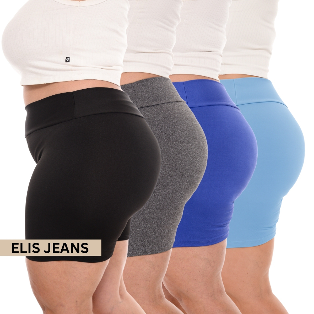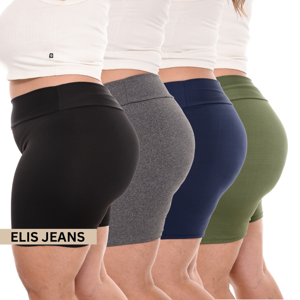 Kit 4 Shorts Feminino Plus SizeFitness Meia Coxa Short Cintura Alta Bermuda Legging Zero Transparência