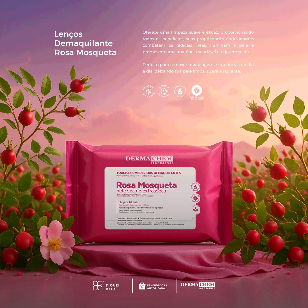 Kit 4 Toalhas Umedecidas Demaquilantes com Rosa Mosqueta 25 Lenços Limpeza e Hidratação da Pele Dermachem