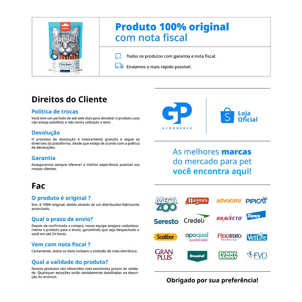 Kit 4 Truly Wanpy Petisco para Gatos Mini Tiras de Frango e Peixe 80g