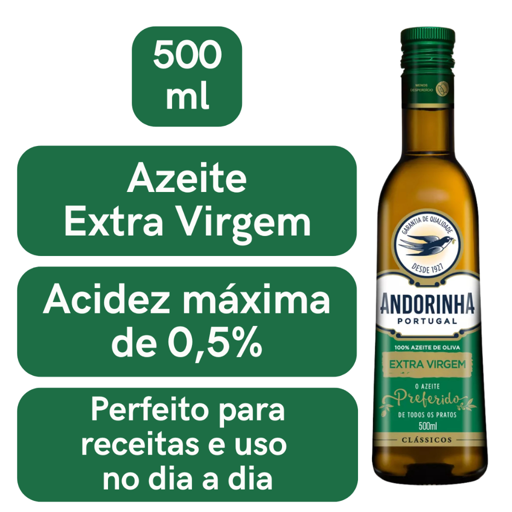 Kit 4 Unidades Azeite Extra Virgem Andorinha 500ml Clássicos Dia a Dia