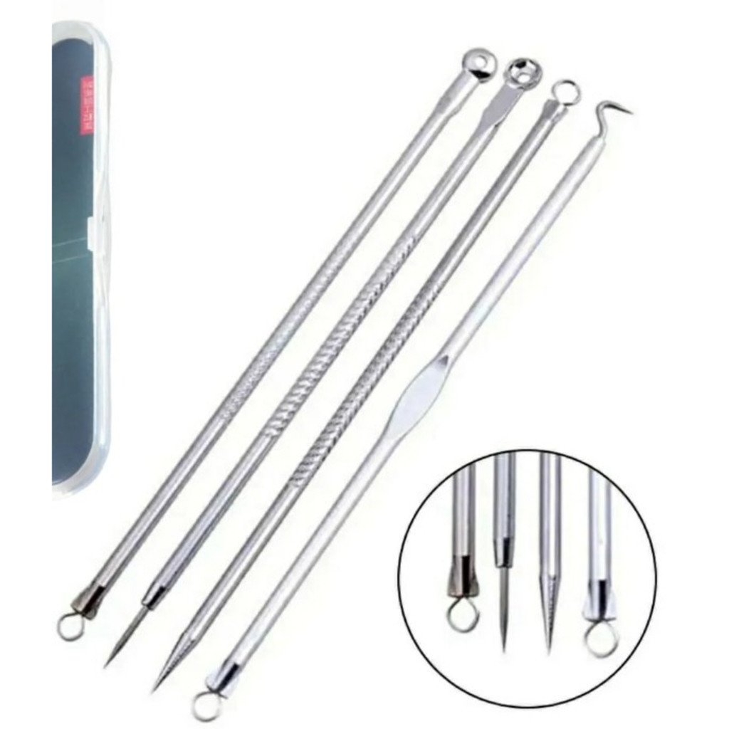 Kit 4 de Ferramentas de Beleza Extrator de Acne Removedor de Cravo Espinha Aço Inoxidável - Entrega Pronto - WL