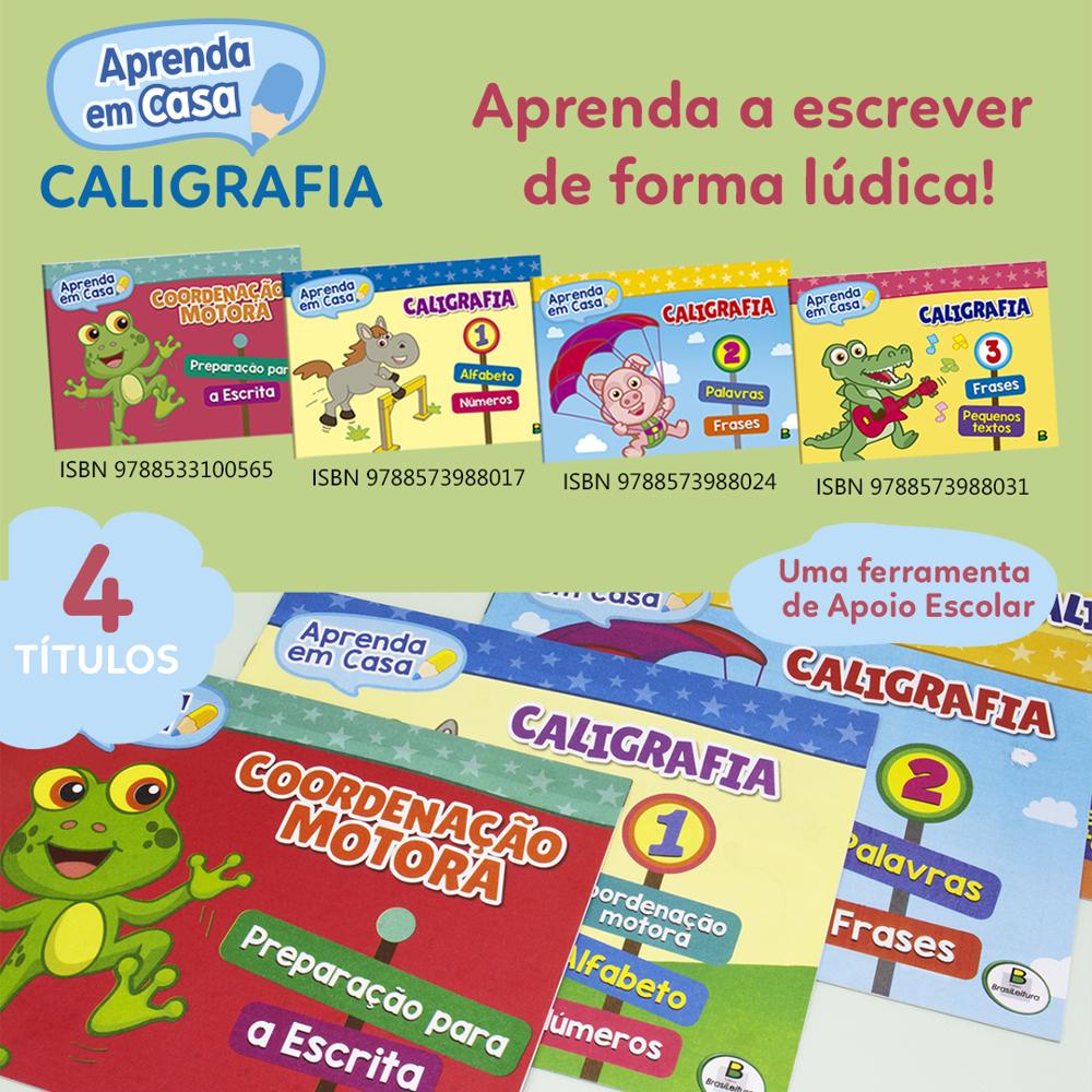 Kit 4 livros Caligrafia Aprenda em Casa desenvolvimento de coordenação Volume 1, 2 3 e 4 TodoLivro