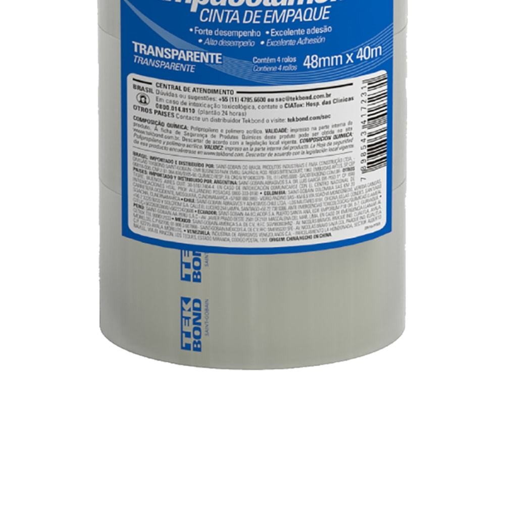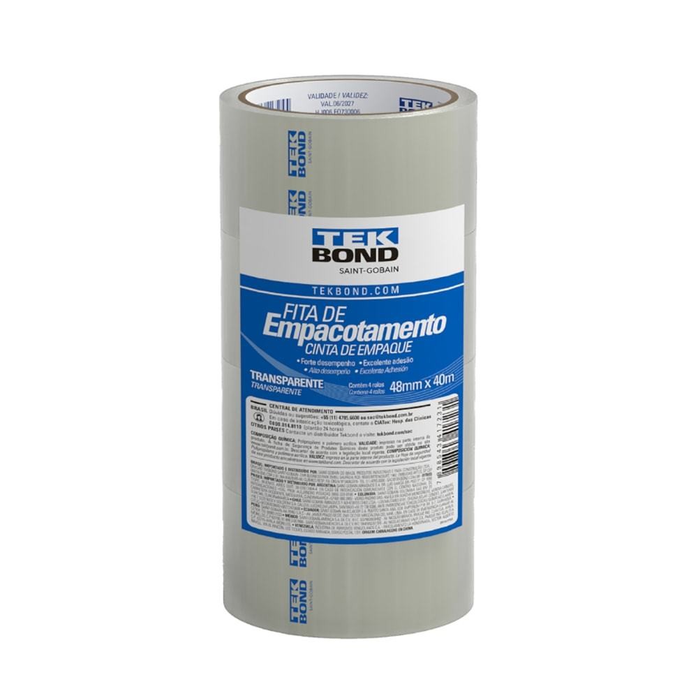 Kit 4 unidades Fita de Empacotamento 48mm x 40M Tekbond