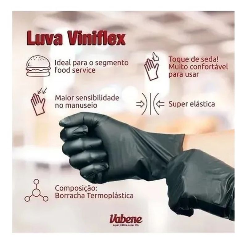 Kit 400 Luvas Viniflex Preta e Transparente Descartável Tam P M G