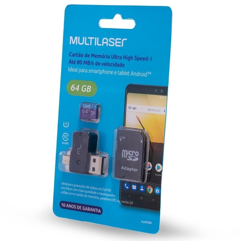 Kit 4x1 Cartão Micro SD 64gb Adaptador Pendrive Adaptador SD MC152
