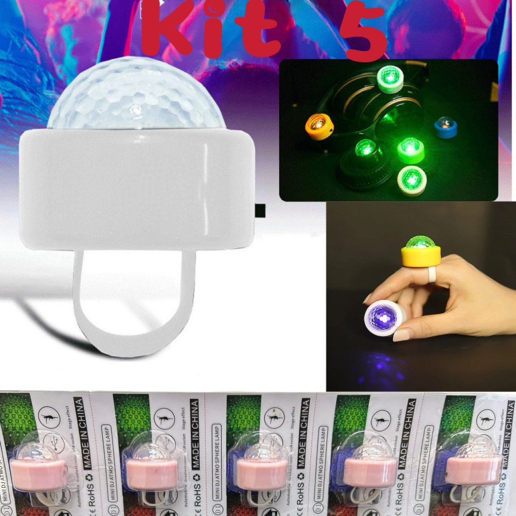 Kit 5 Anel de Luz discoteca dedos de qualquer tamanho Finger light Party ring Atmo Sphere lamp mini DJ