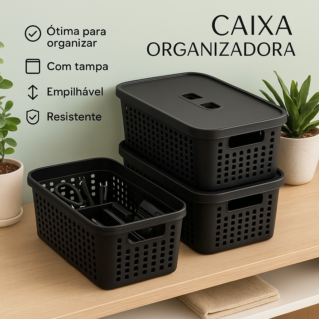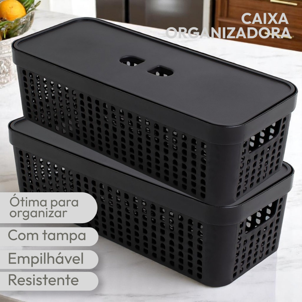 Kit 5 Caixas Organizadoras com Tampa 3,6 Litros Cesto Grande em Plástico Resistente