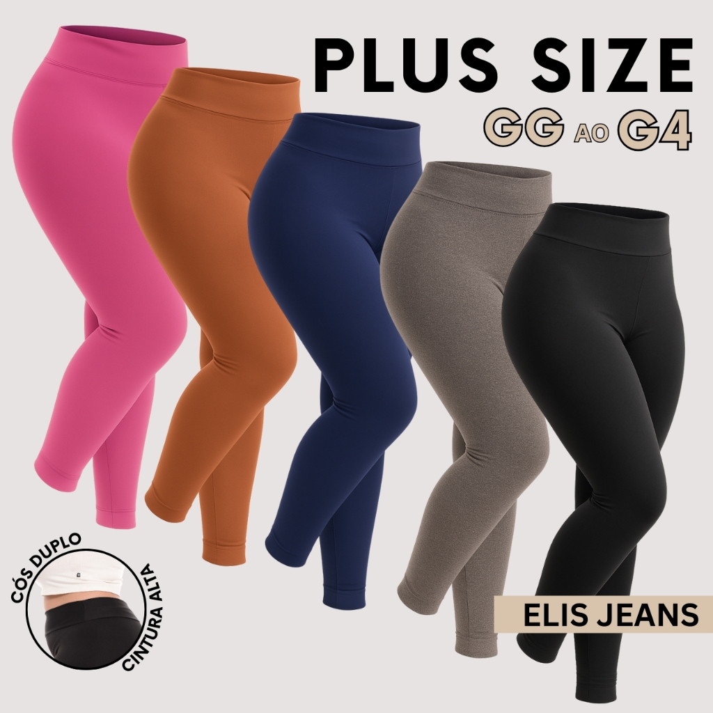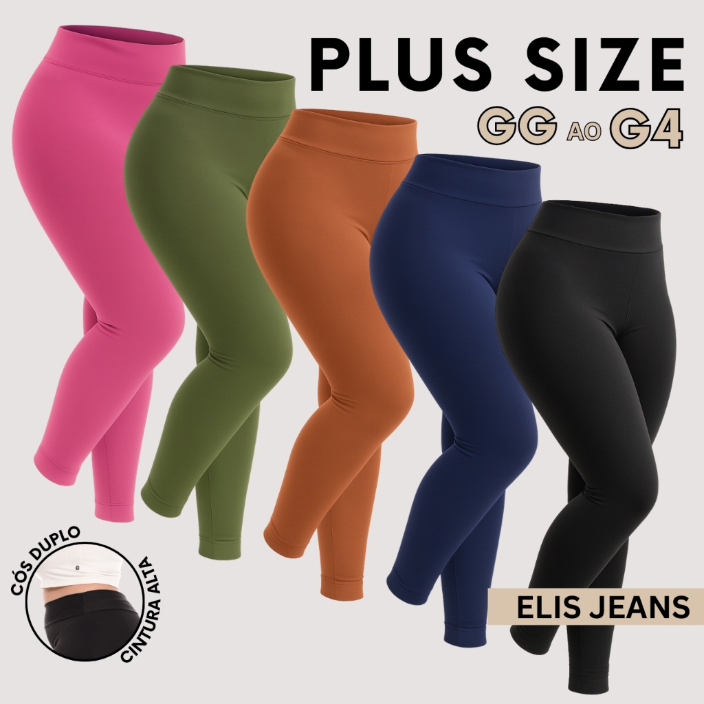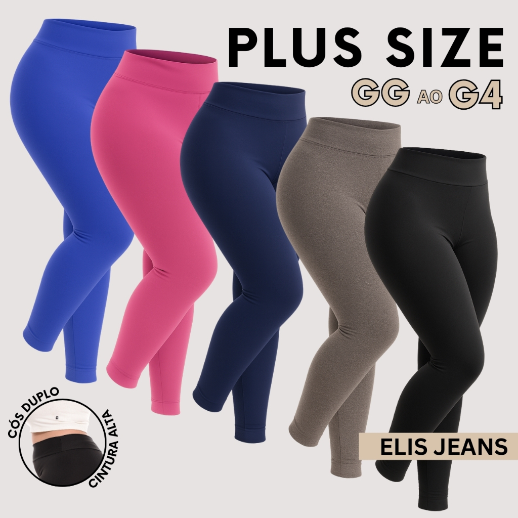 Kit 5 Calças Legging Plus Size Fitness Feminina Cintura Alta Leg Suplex Academia Zero Transparência