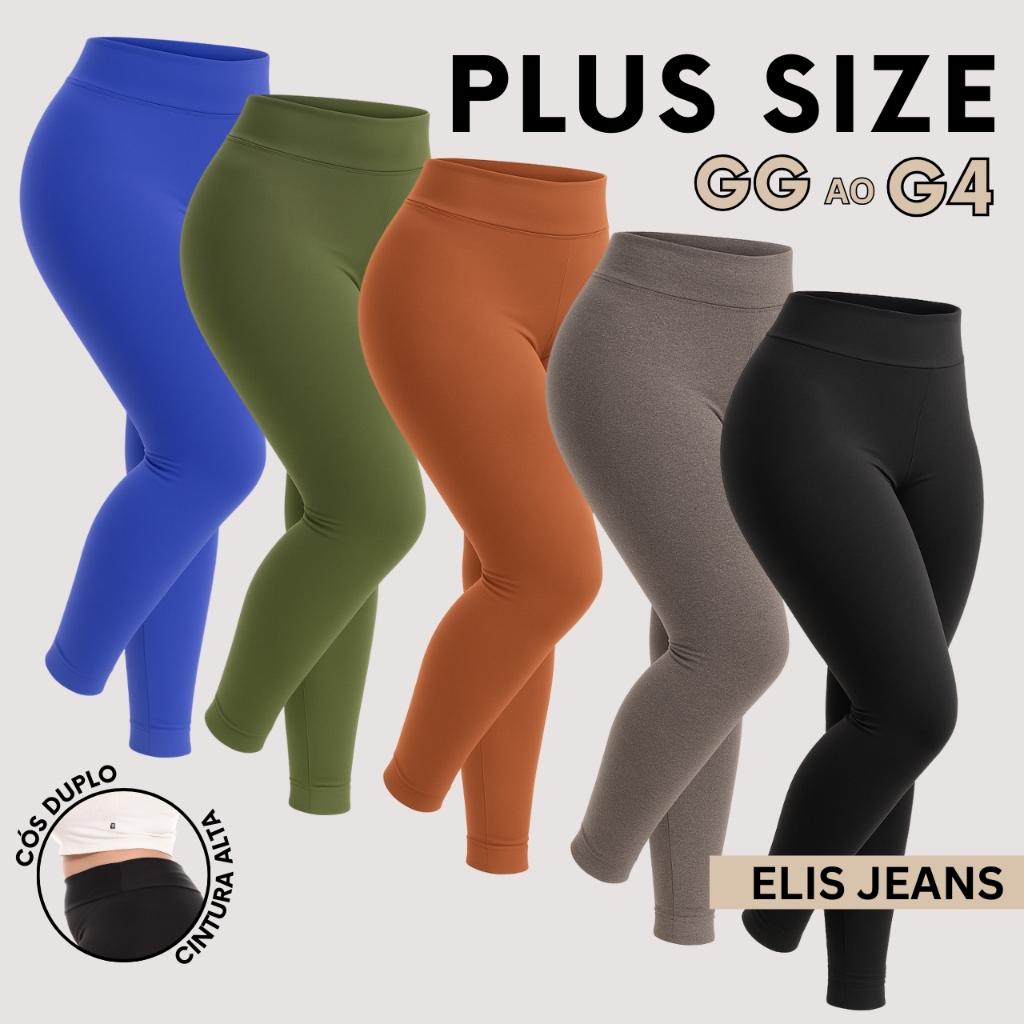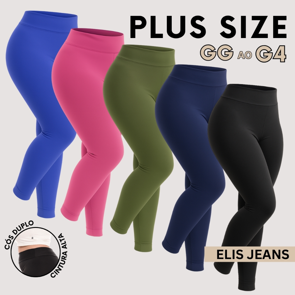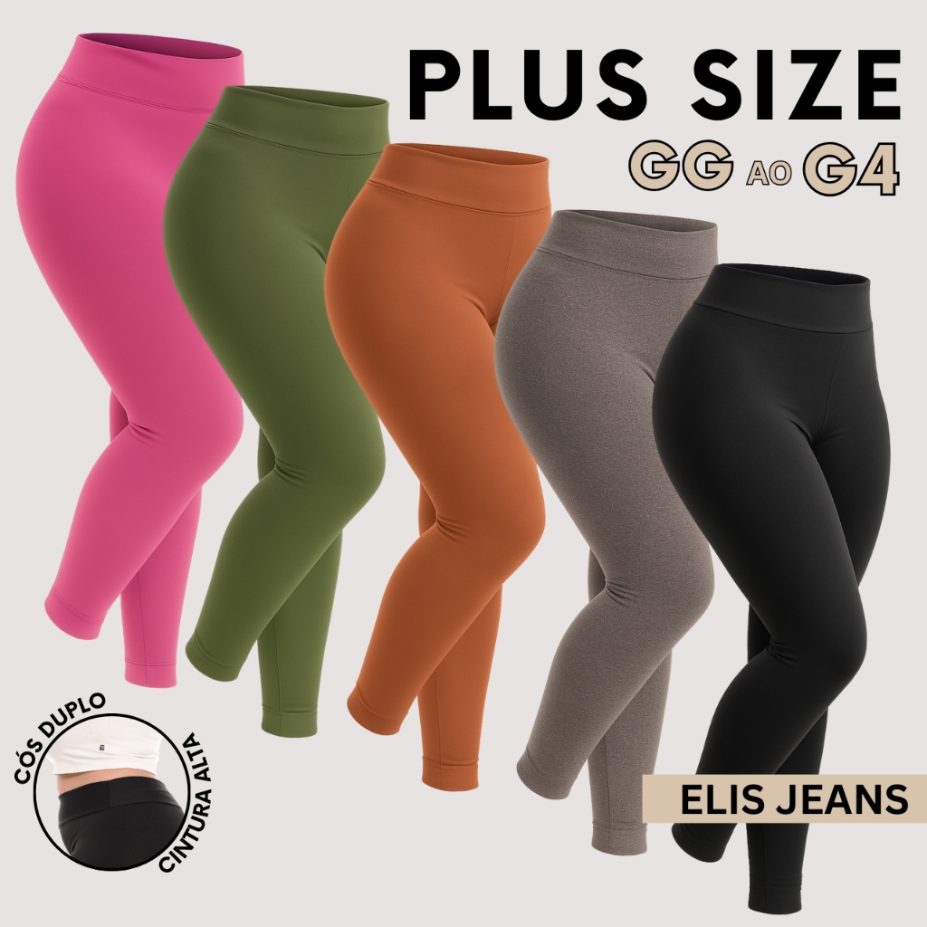 Kit 5 Calças Legging Plus Size Fitness Feminina Cintura Alta Leg Suplex Academia Zero Transparência