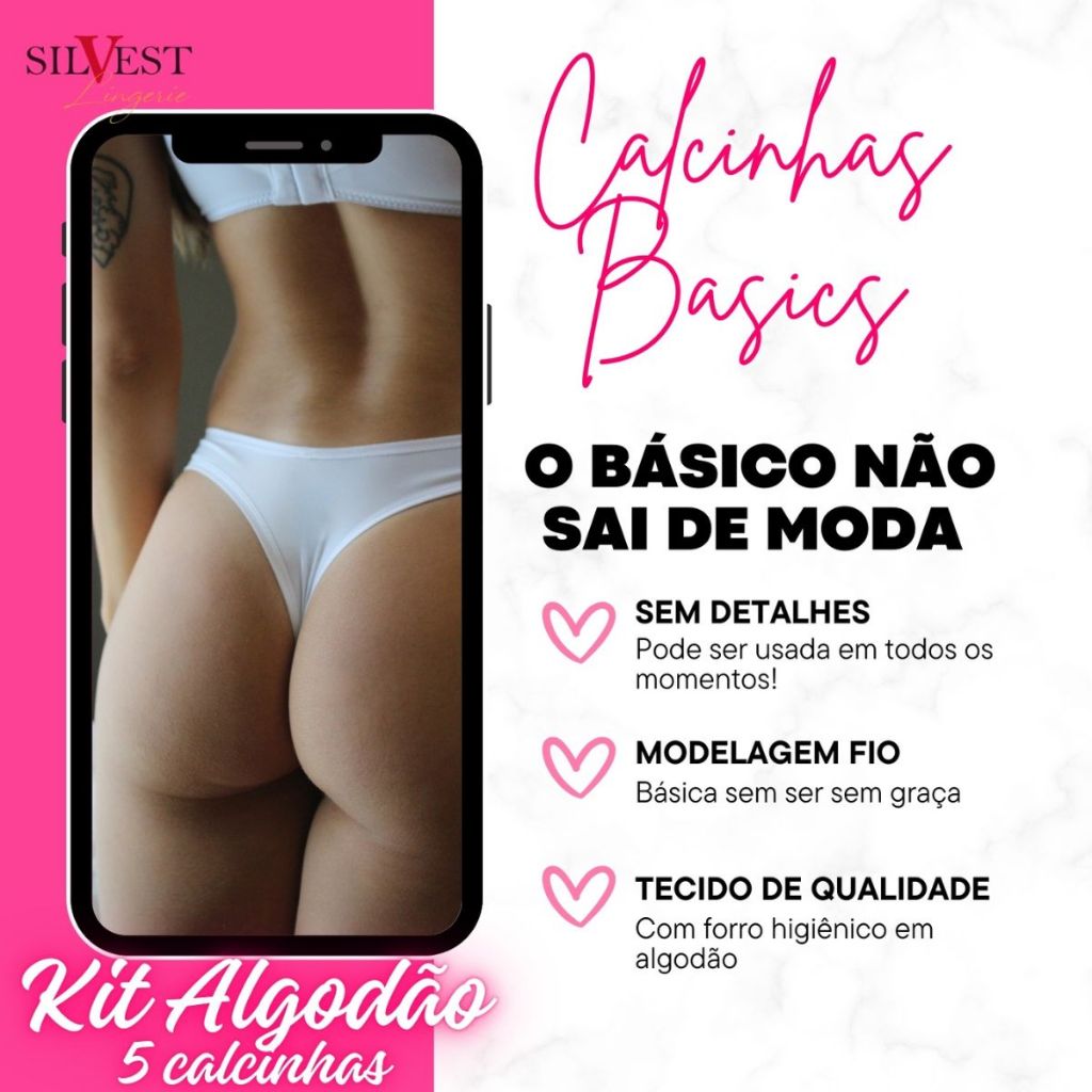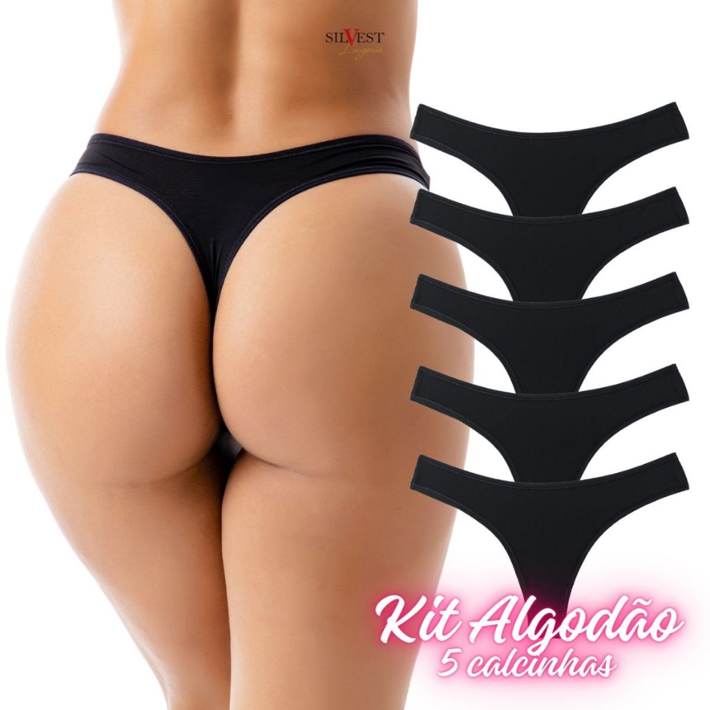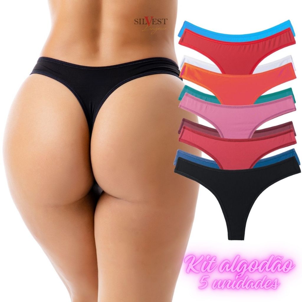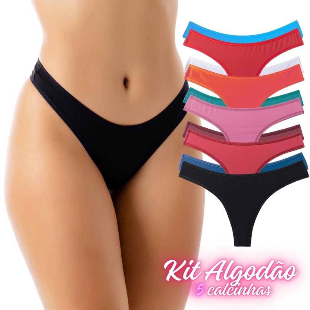 Kit 5 Calcinhas de Algodão Feminina Adulto Tanga Fio