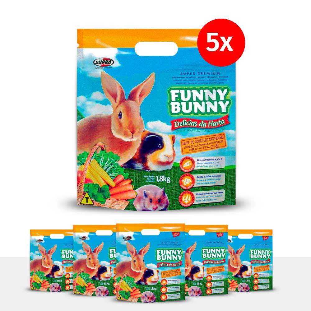Kit 5 Funny Bunny Delícias da Horta 1,8kg Ração para Coelhos e Roedores Supra