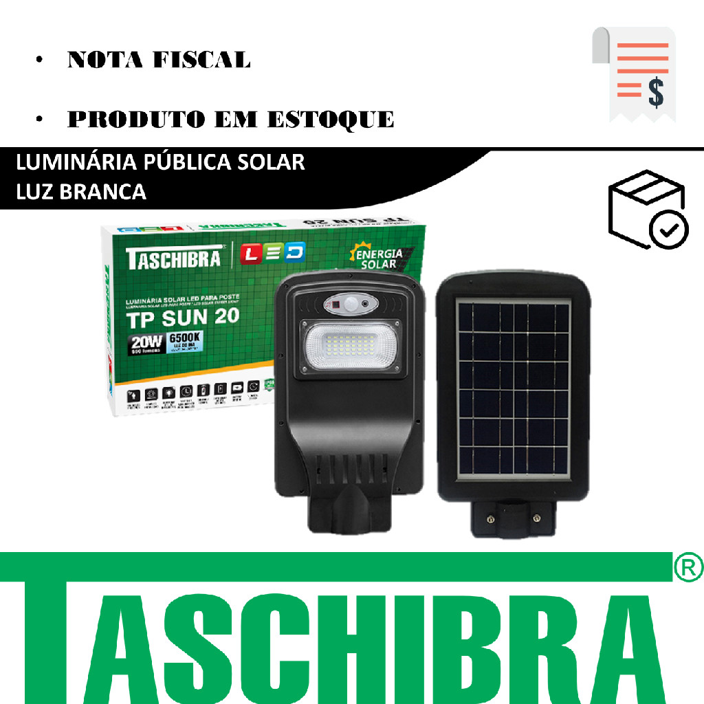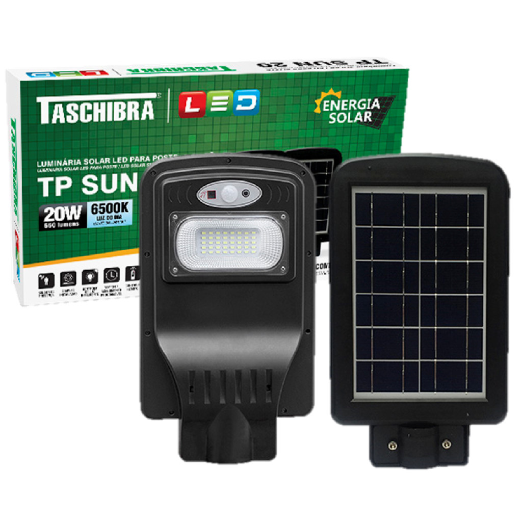 Kit 5 Luminaria Publica Solar 20w 6500K Sensor Presença IP65