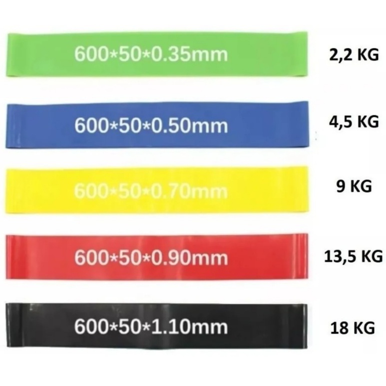Kit 5 Mini Bands Elástico Exercício Treino Em Casa 5 Níveis Para Yoga Pilates Treino Academia