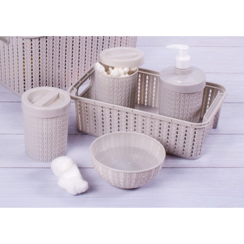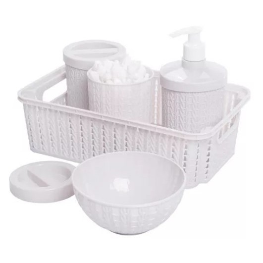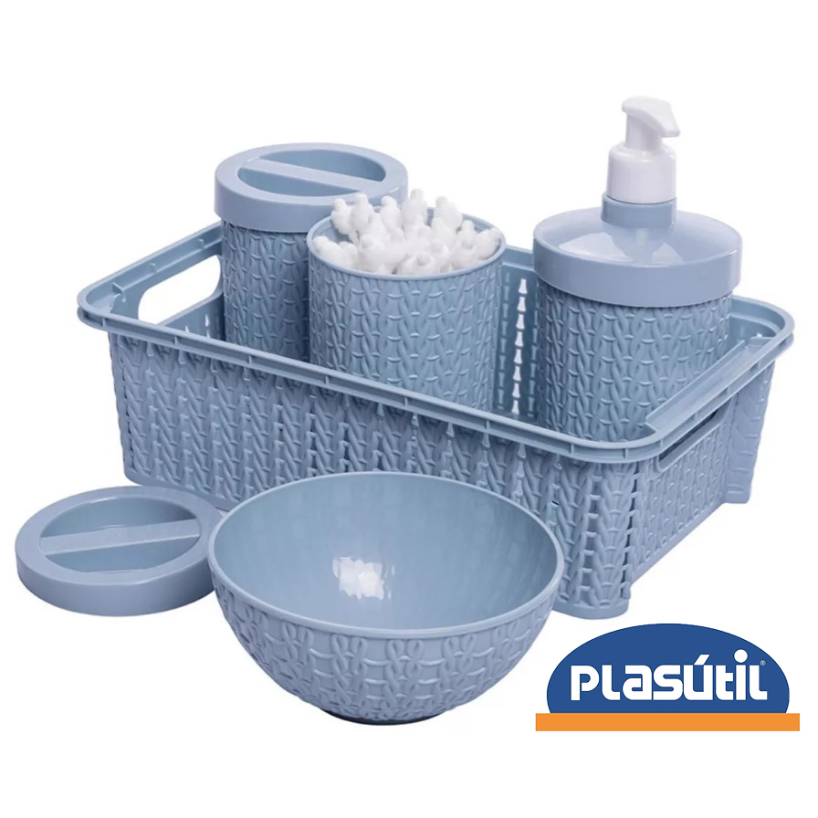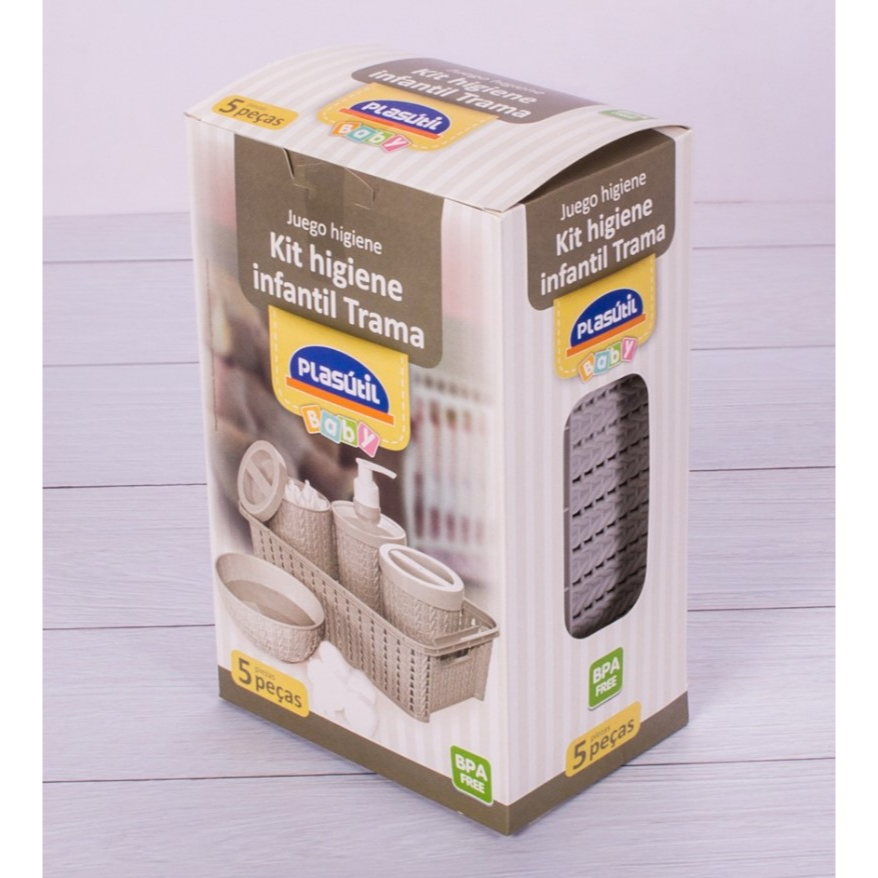 Kit 5 Peças Higiene Plasútil para Bebê C/ Cestinha Organizadora Enxoval - textura em trama