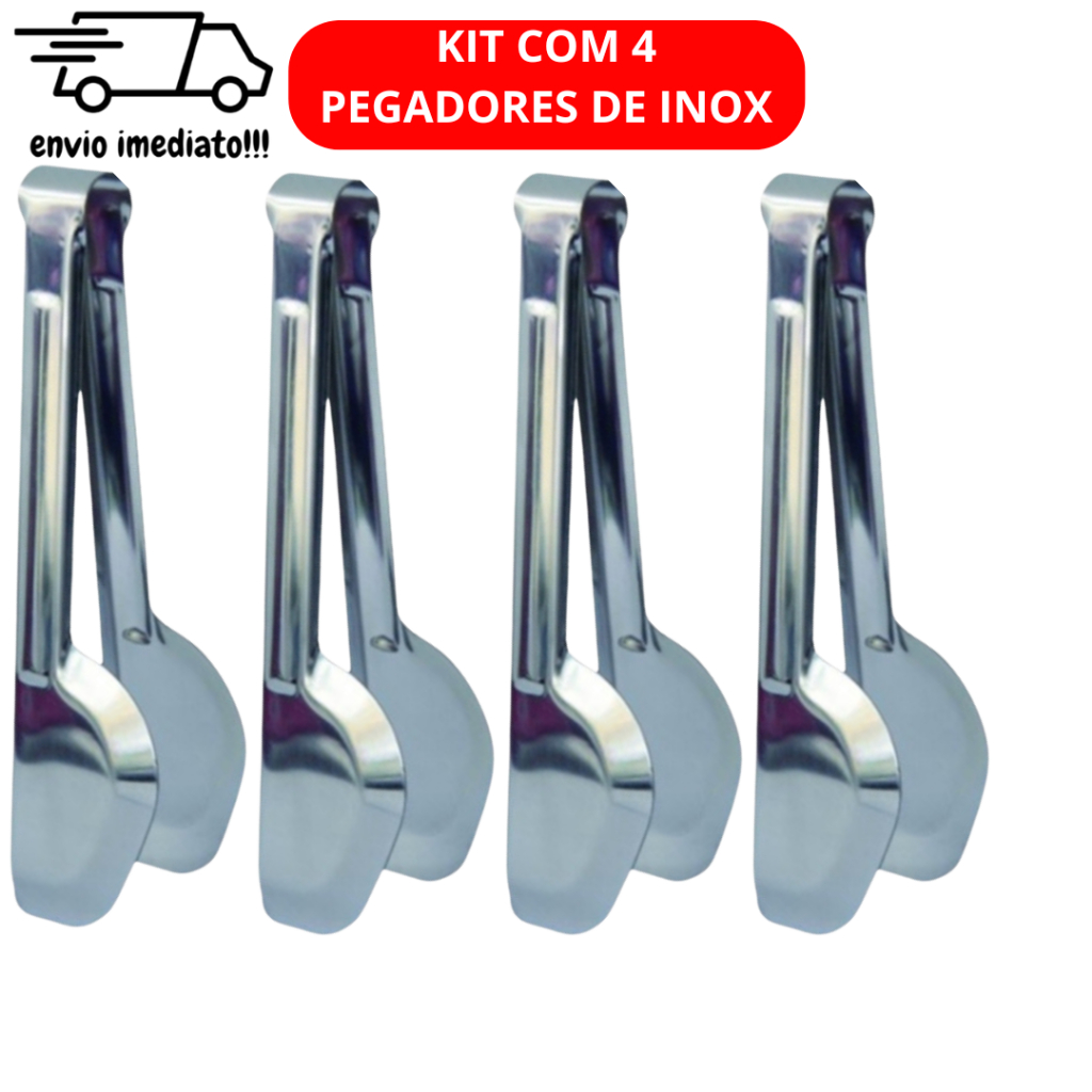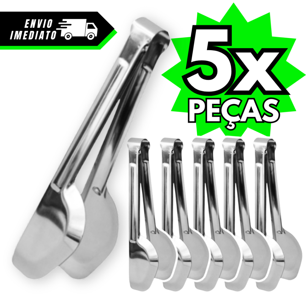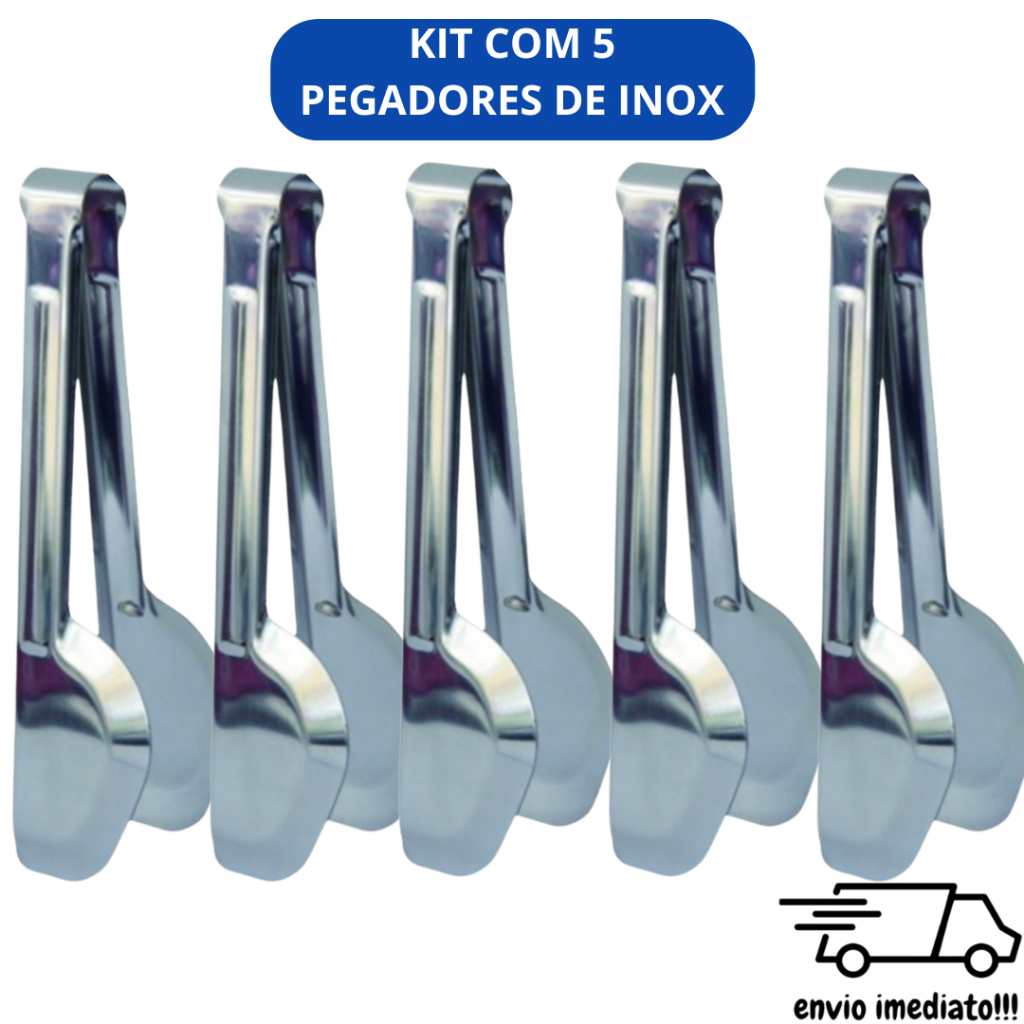Kit 5 Pegadores de Inox Pinça Universal Churrasco Saladas Massas Comidas e Alimentos geral Pegador