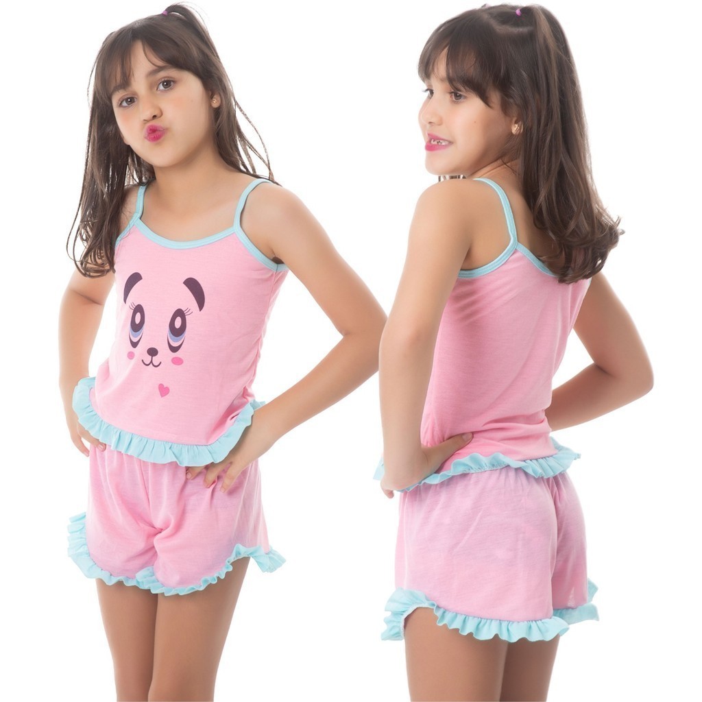 Kit 5 Pijama INFANTIL MALHA Baby Doll Estampado Personagens Short Doll