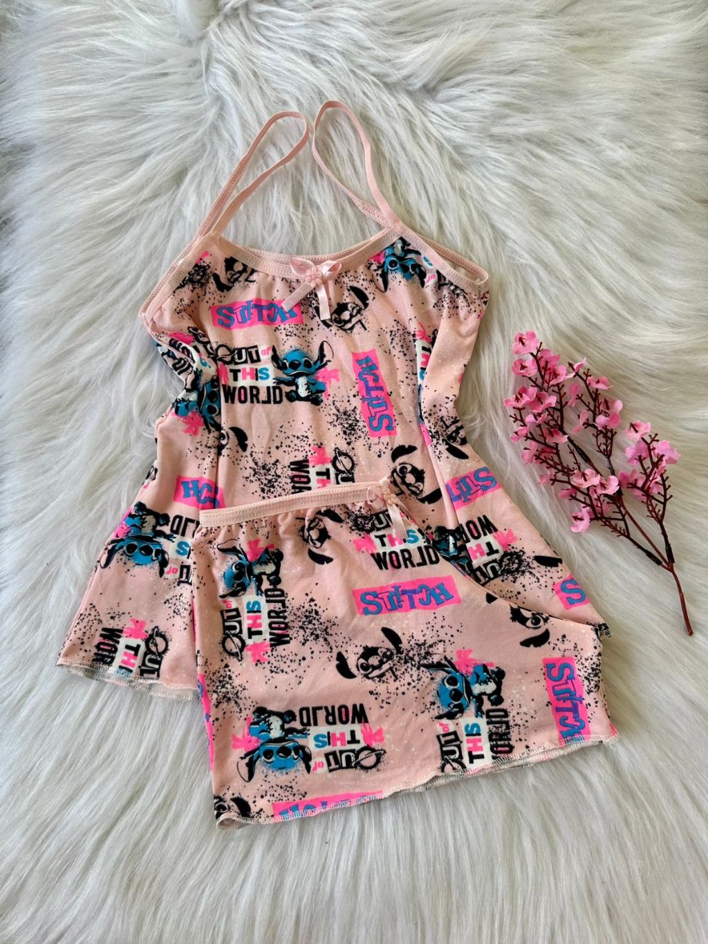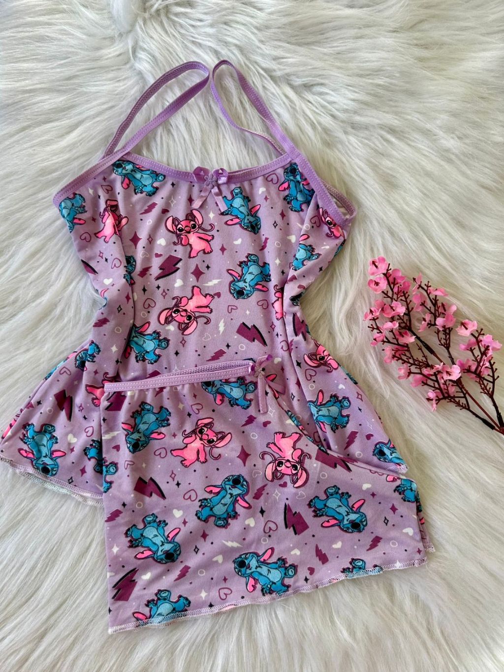 Kit 5 Pijamas Short Doll Infantil Menina Personagens Stitch Soft Poliéster