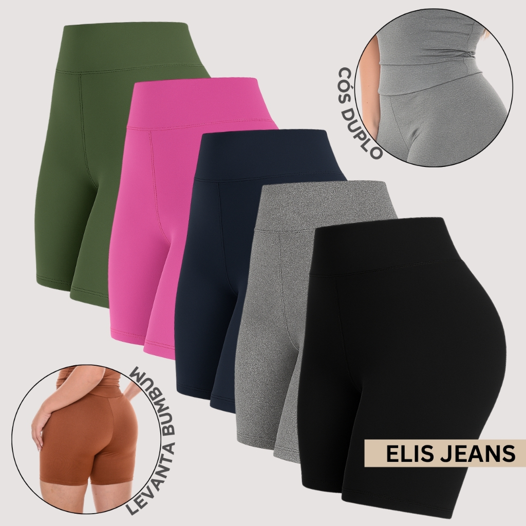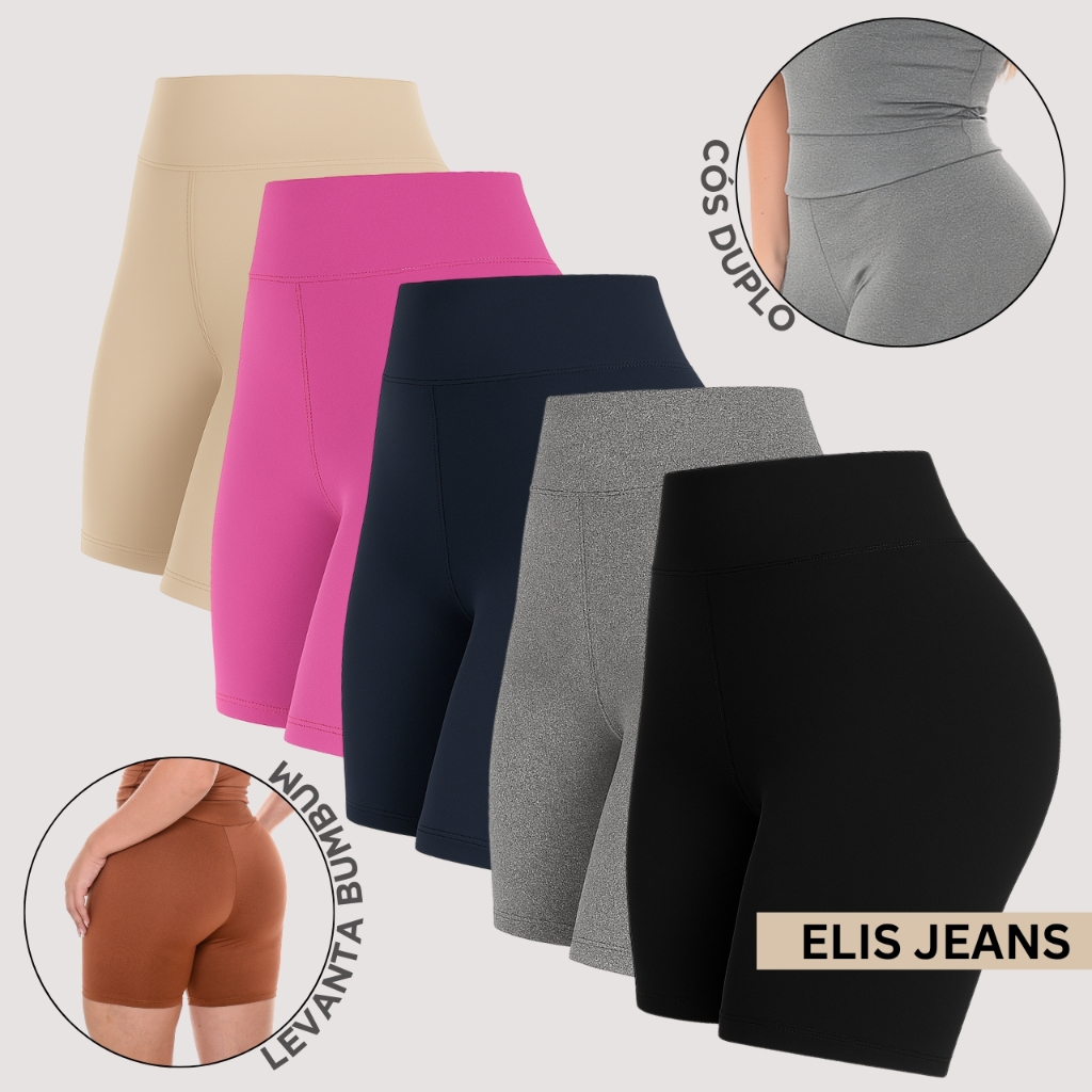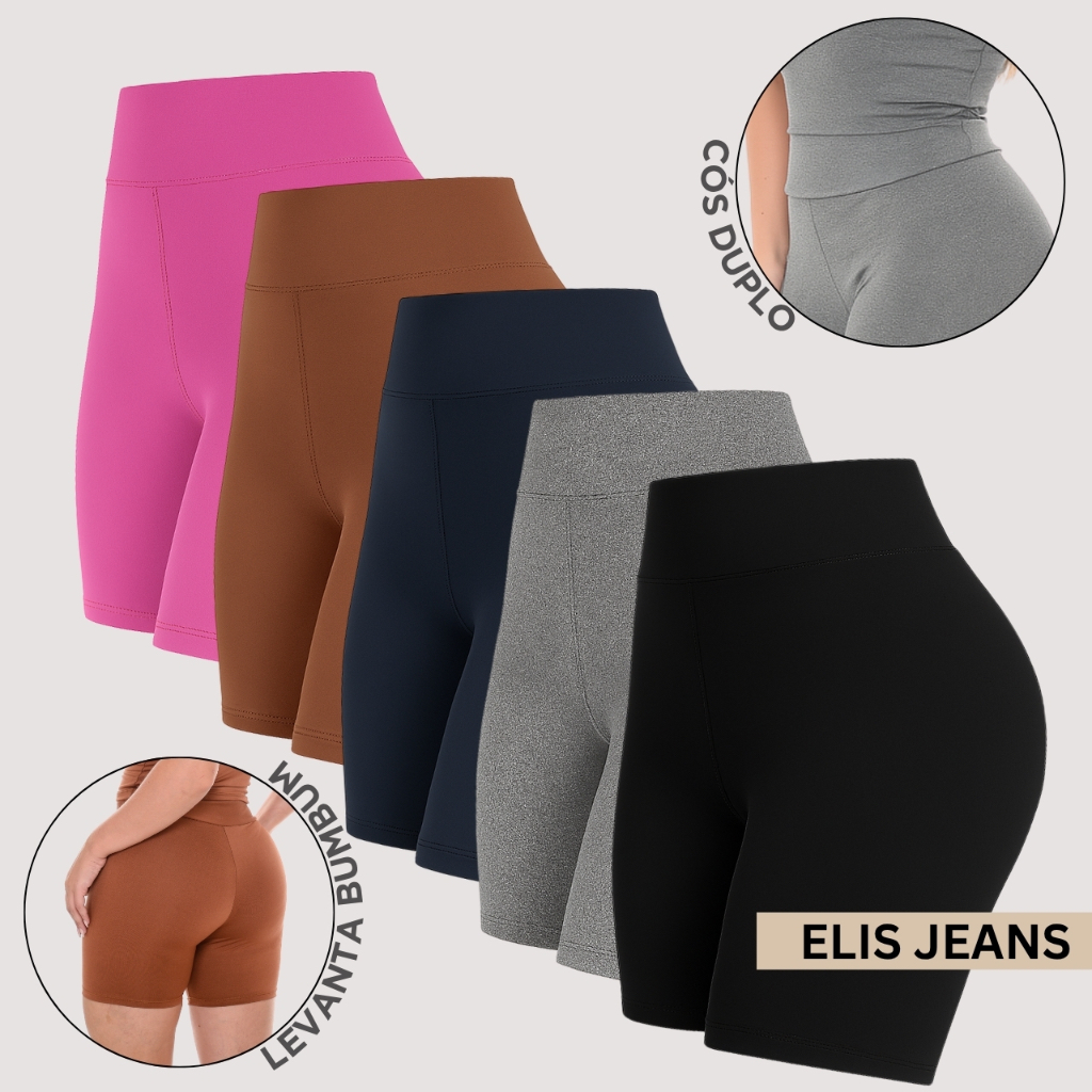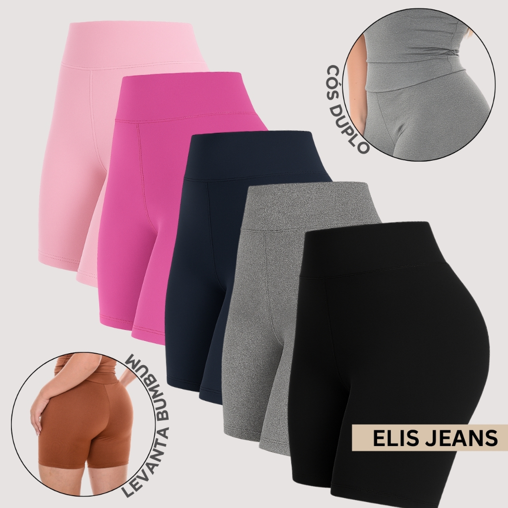 Kit 5 Shorts Feminino Fitness Meia Coxa Cintura Alta Bermuda Legging Zero Transparência